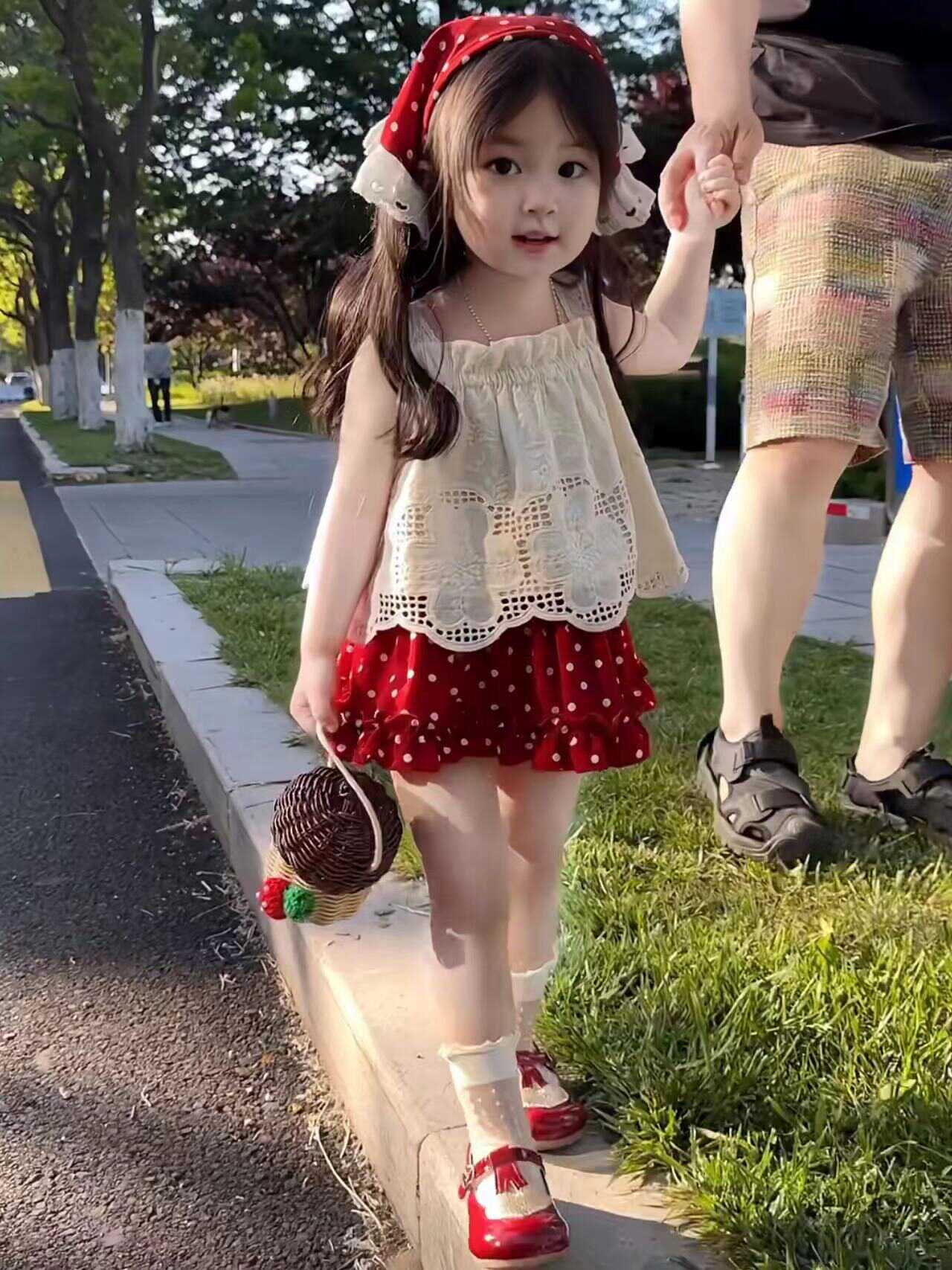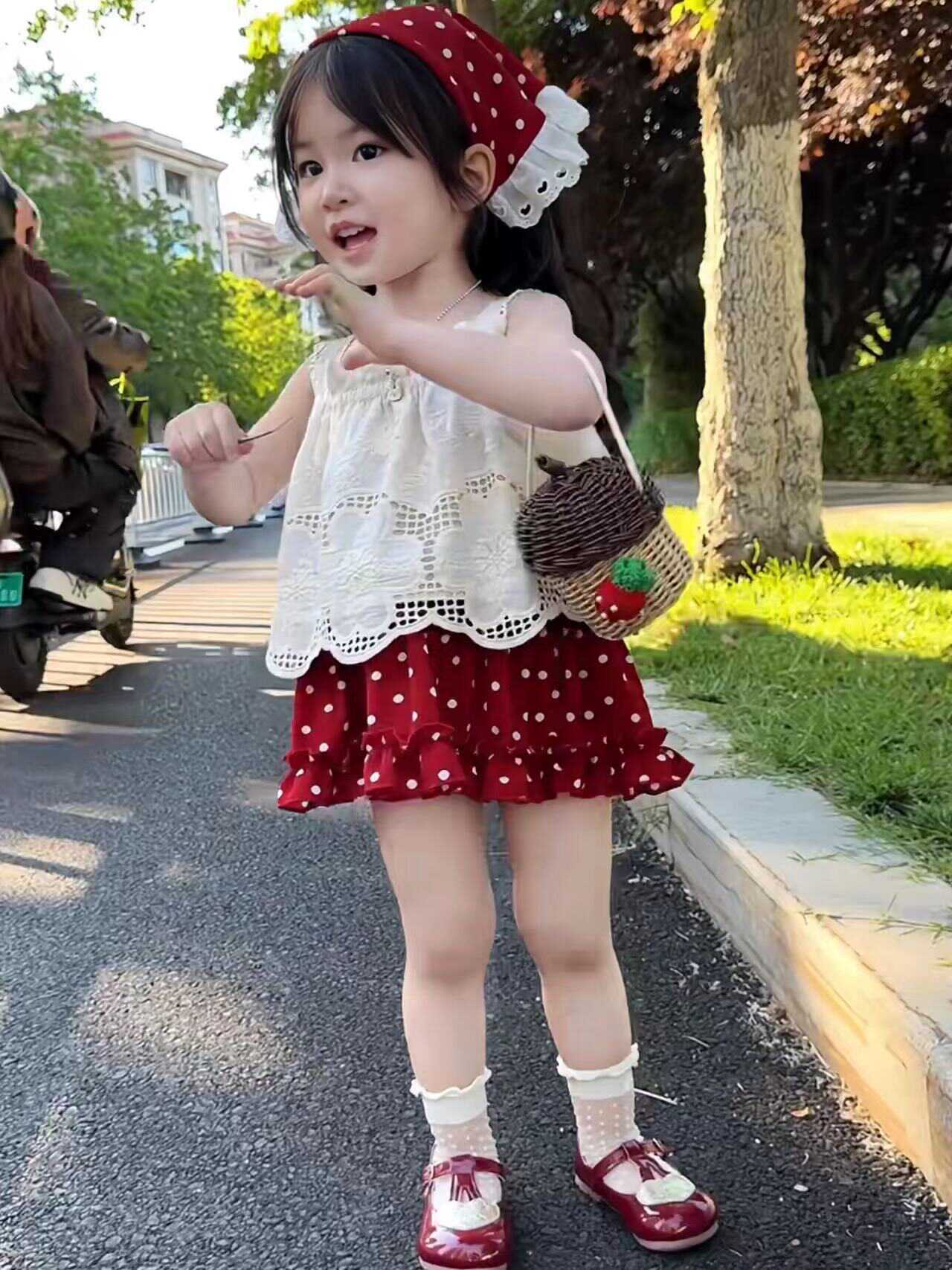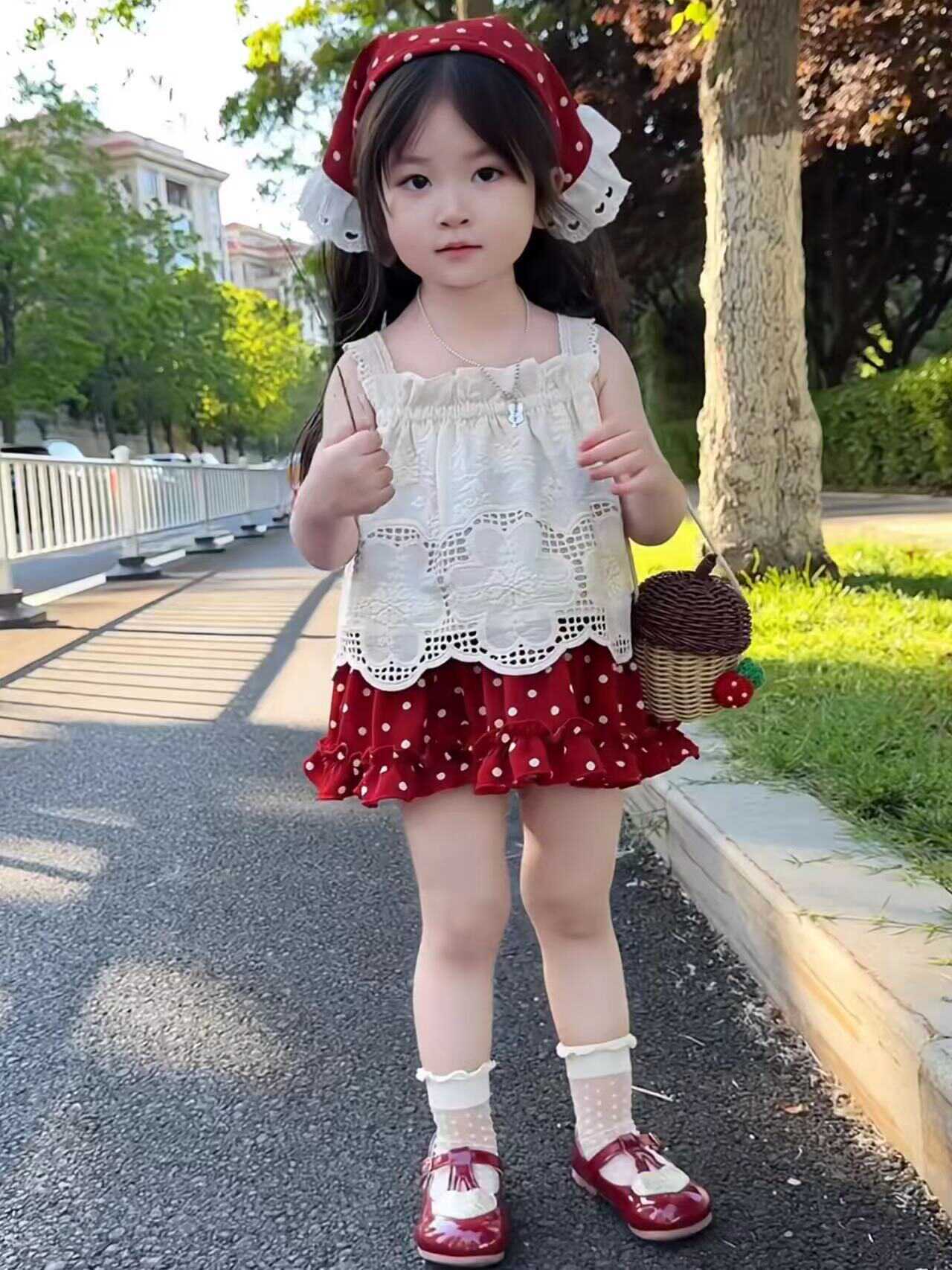 [헤어후프] 소녀 작은 빨간 승마 후드 모리 공주 스타일 슈퍼 요정 폭발 유치원 붉은 웨이브 닷 외국식 세트