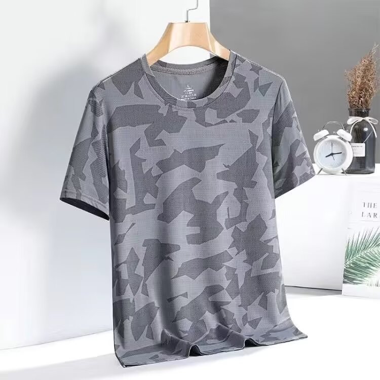 아이스 실크 짧은 소매 티셔츠 도매 남성 여름 둥근 목 얇은 반 소매 위 옷 느슨한 캐주얼 티셔츠 베이스 셔츠