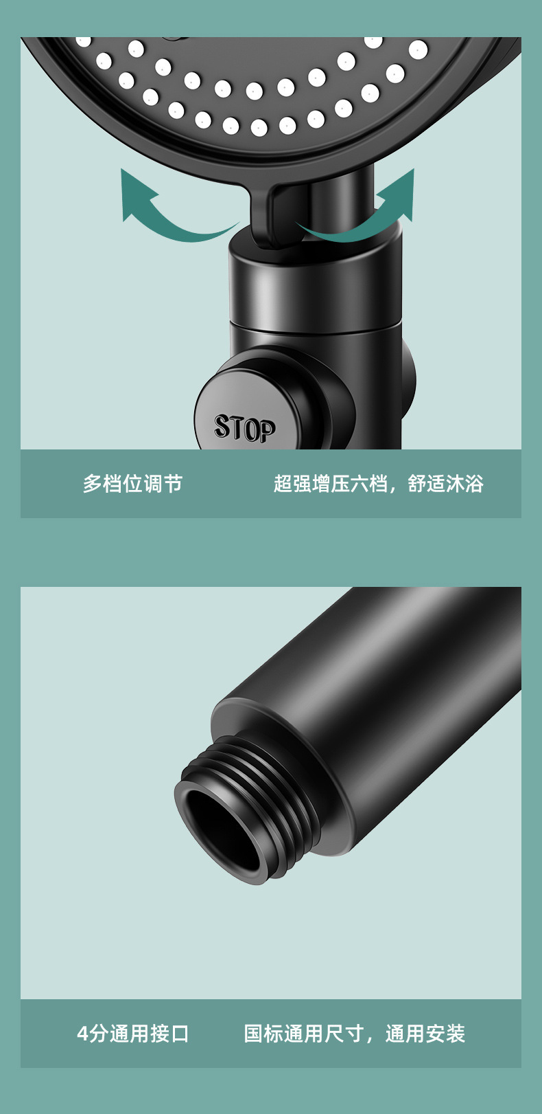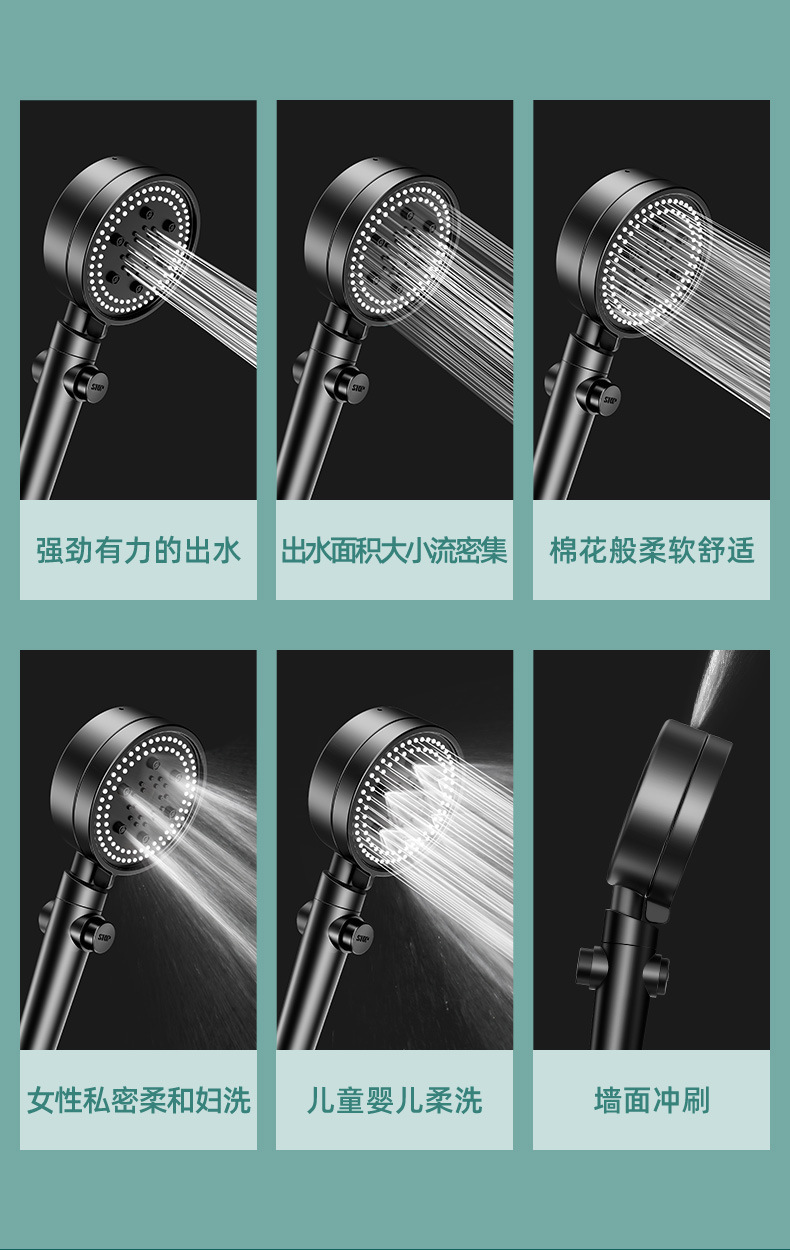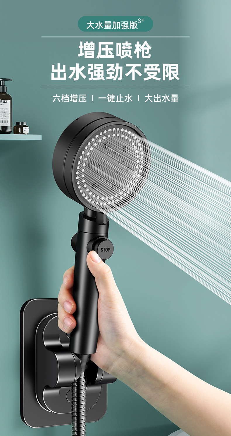 • 6단 강력 슈퍼차저 샤워 + 1.5m 호스 + 브라켓 블랙