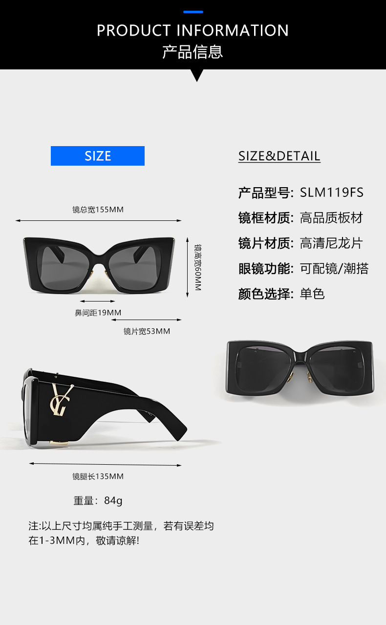 로즈 같은 스타일의 포플러 선글라스 여성 하이 엔드 선글라스 남성 2024 새로운 SLM119 UV 보호스토어 가기
