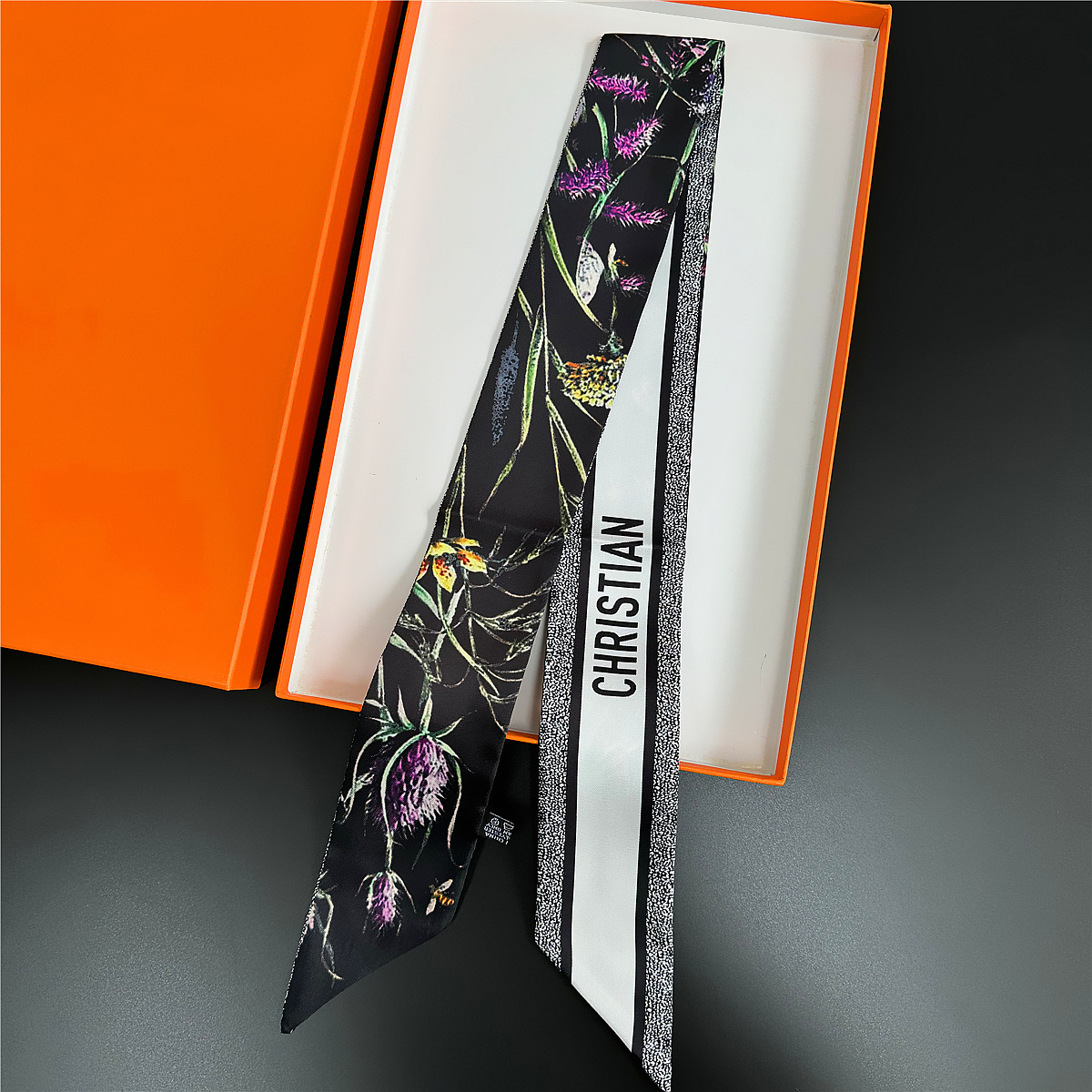 D 홈 시리즈 더블 레이어 양면 인쇄 된 타이 백 핸들 가방 스카프 날씬한 좁은 리본 스카프