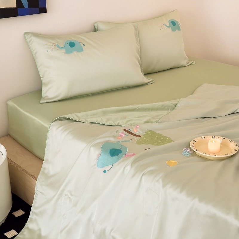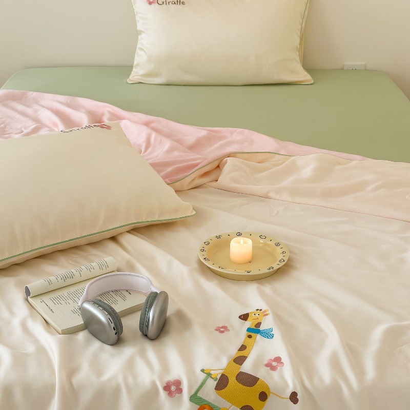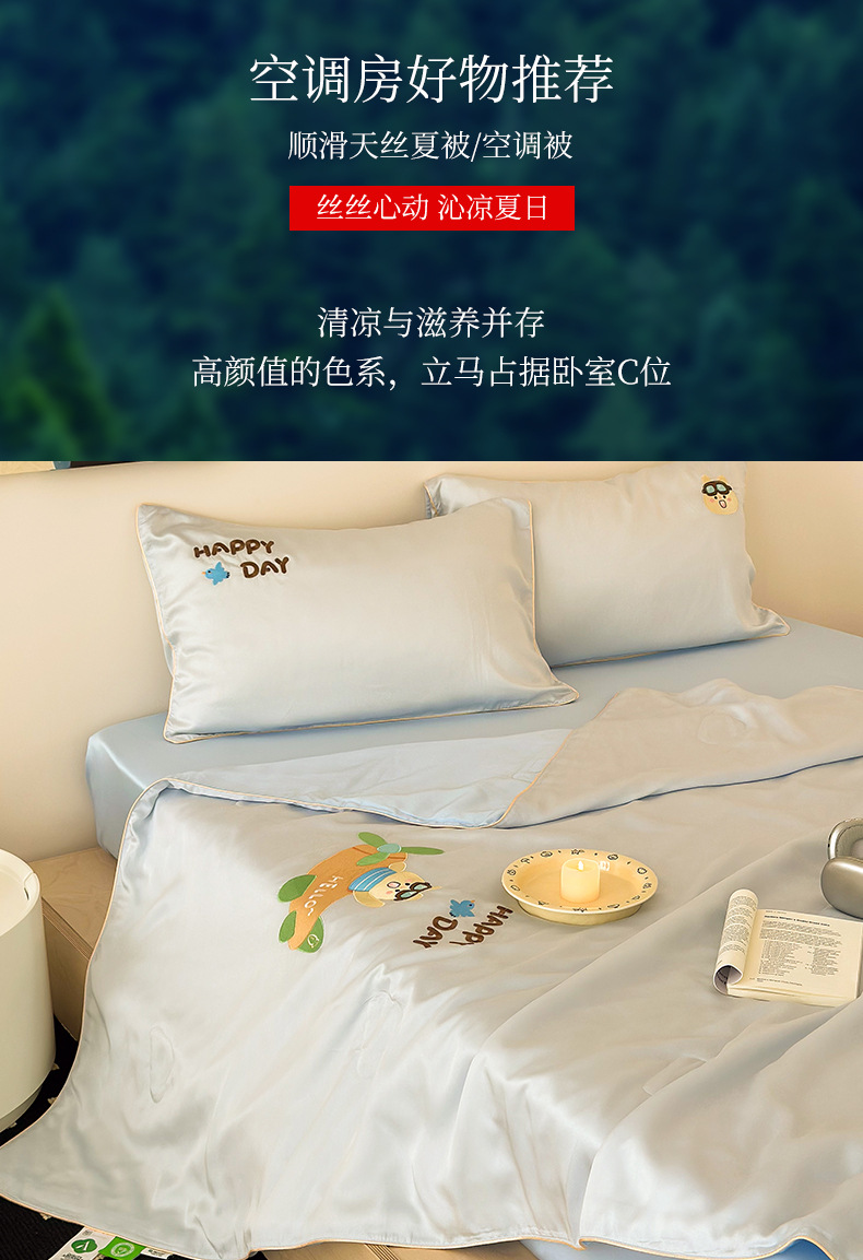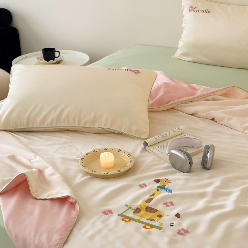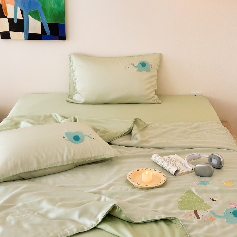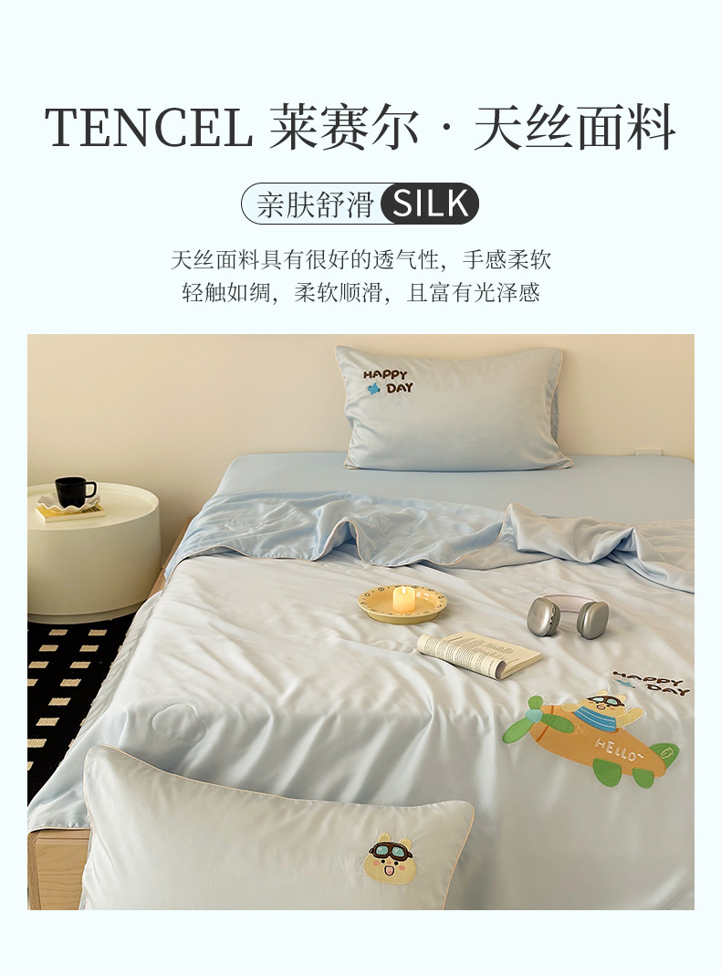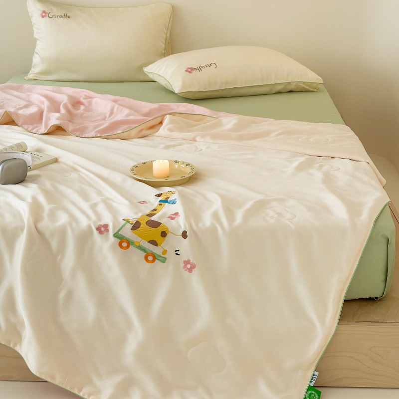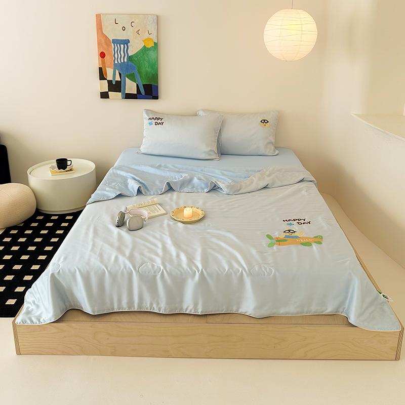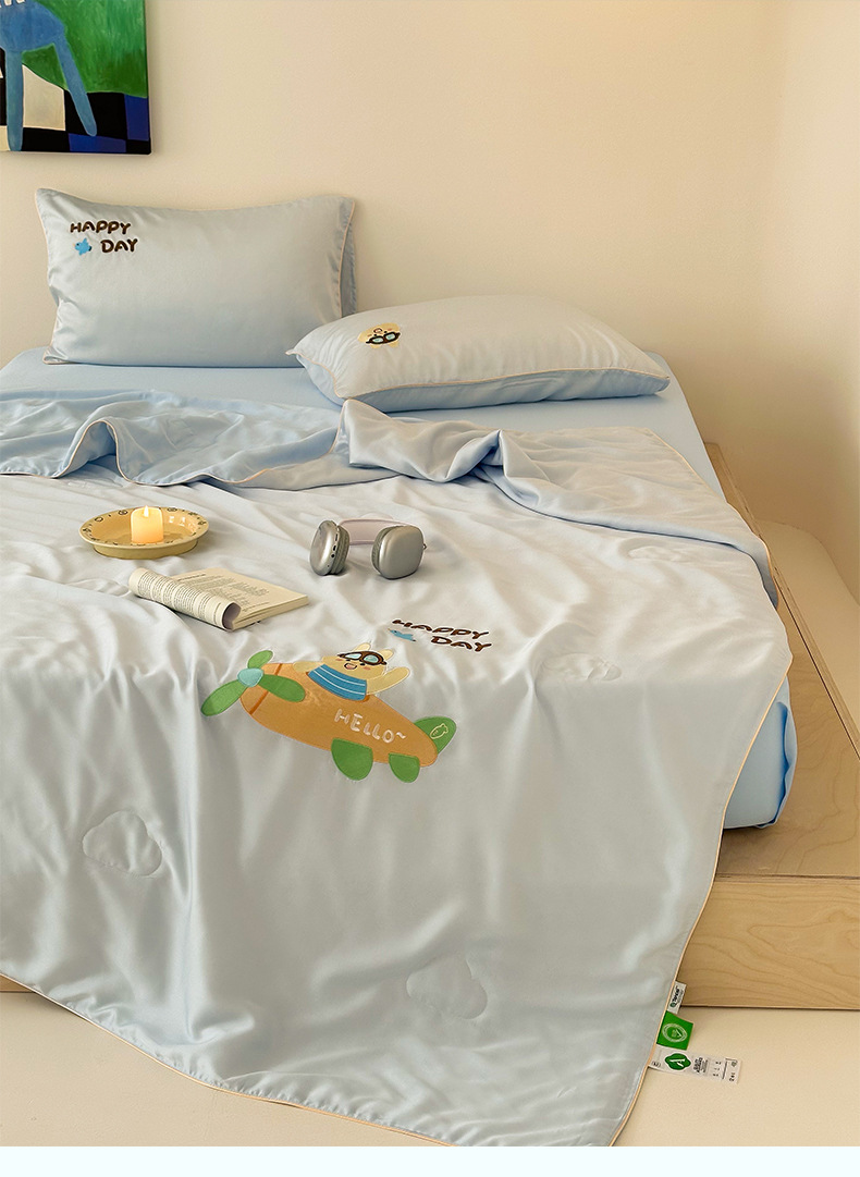 여름 귀여운 만화 어린이 60 텐셀 여름 쿨 퀼트 4 피스 아이스 실크 에어컨 퀼트 쿨 누드 수면 기계 세탁기스토어 가기