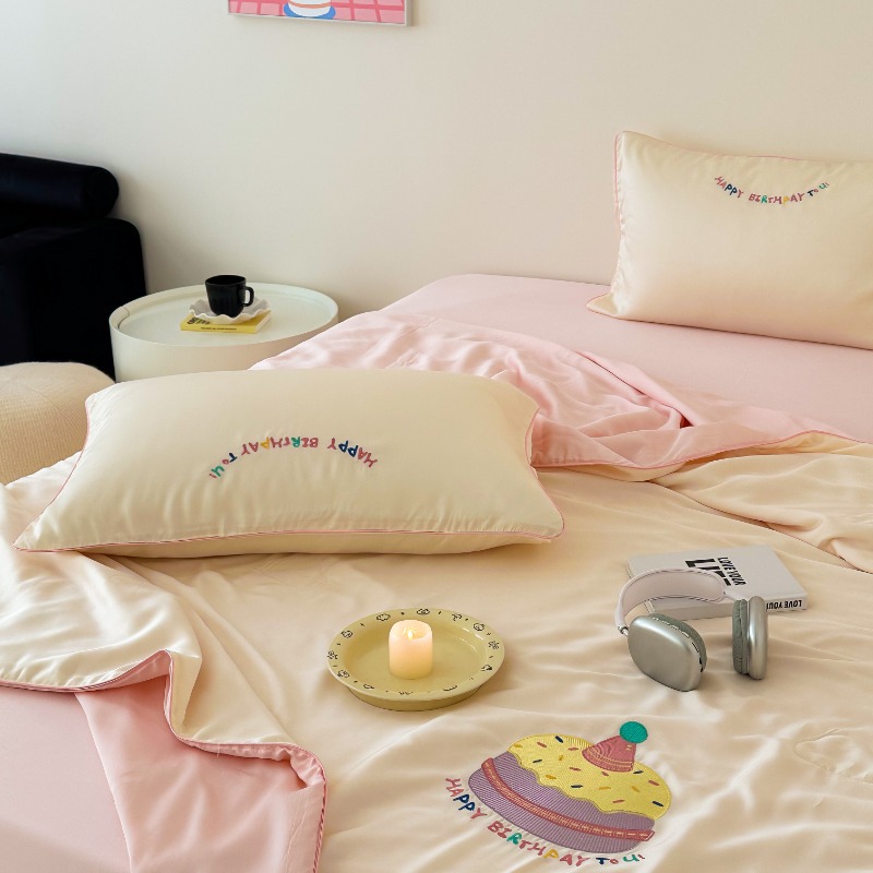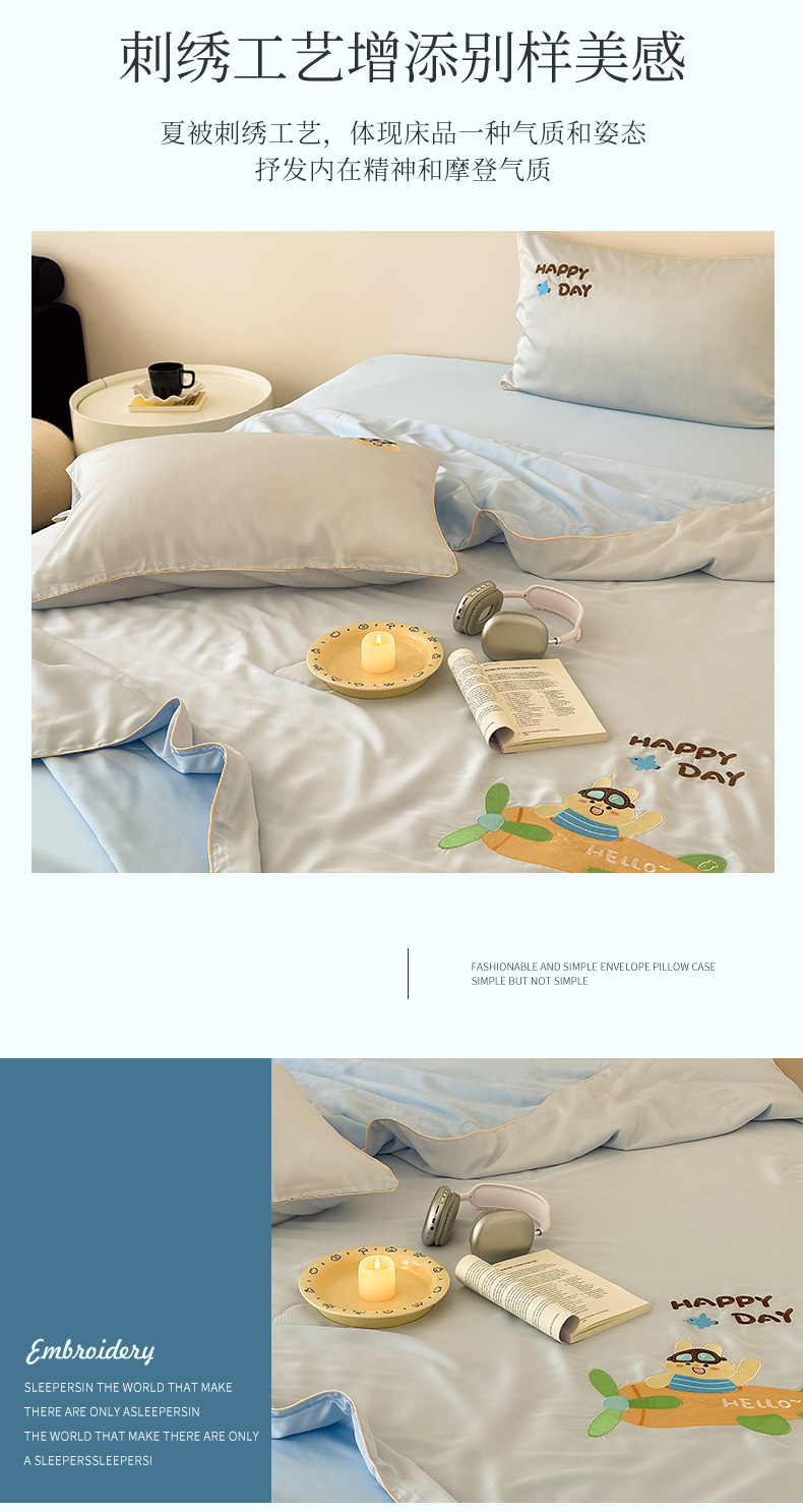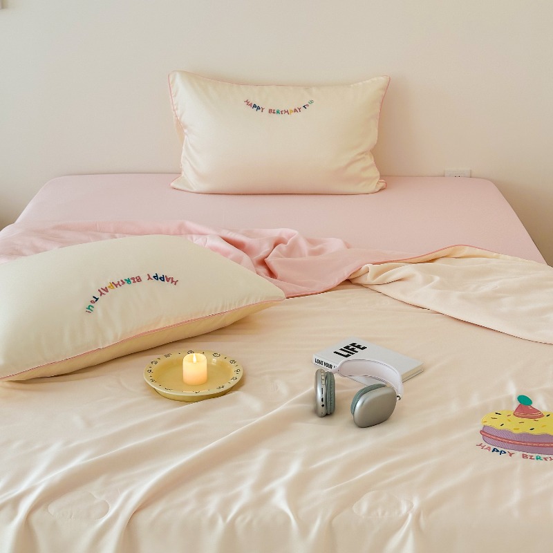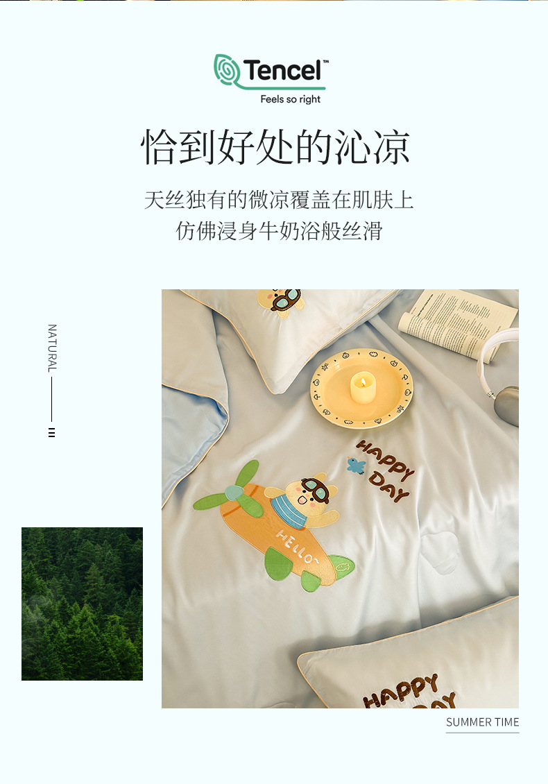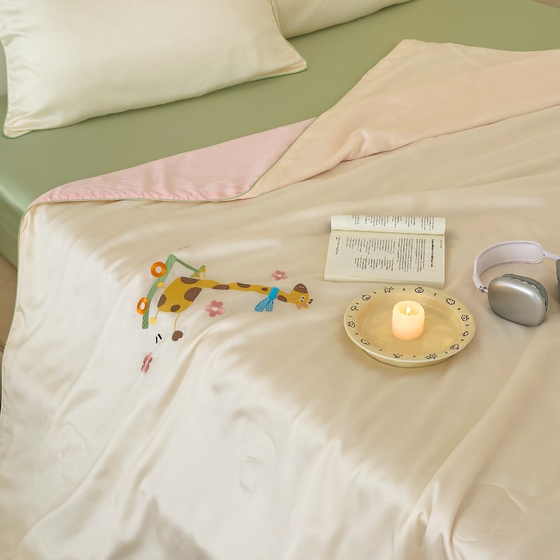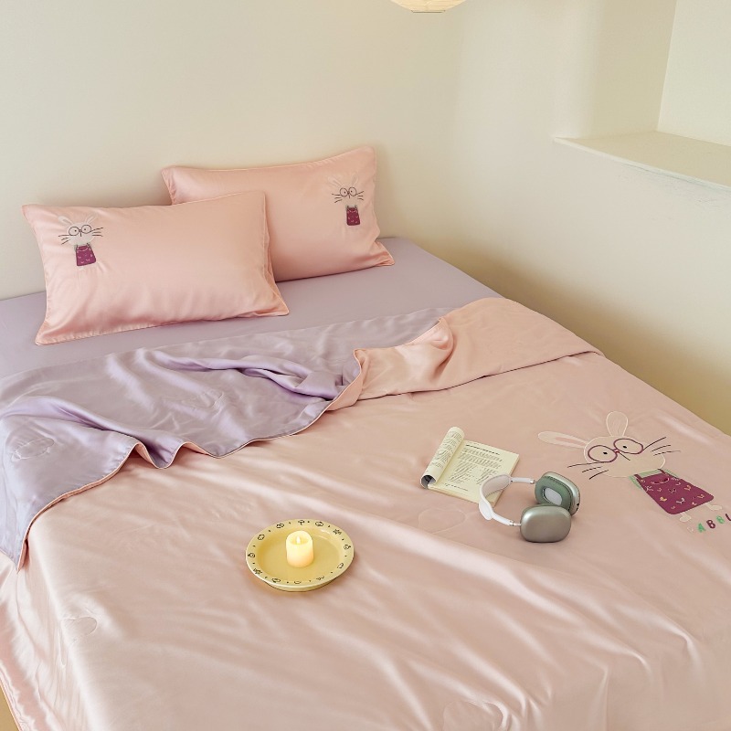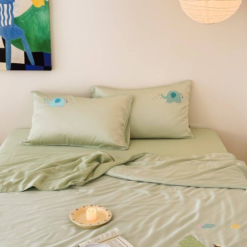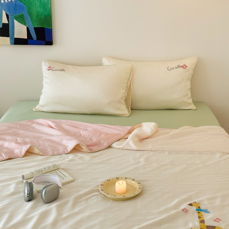 여름 귀여운 만화 어린이 60 텐셀 여름 쿨 퀼트 4 피스 아이스 실크 에어컨 퀼트 쿨 누드 수면 기계 세탁기스토어 가기