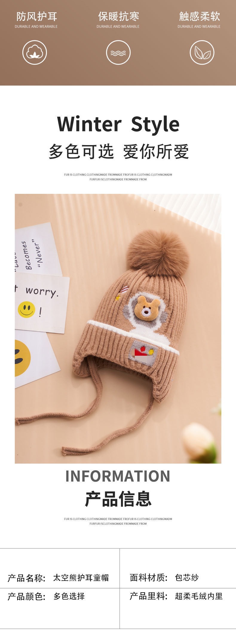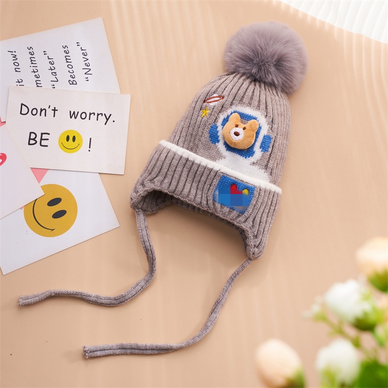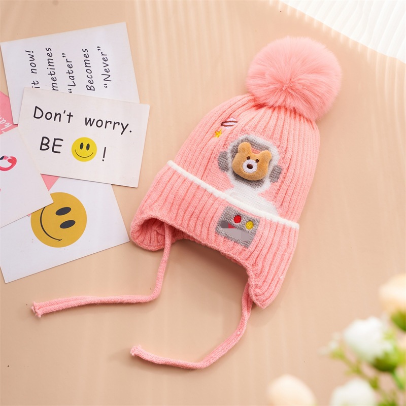 가을과 겨울 어린이 모자 어린이 곰 아기 따뜻한 귀여운 여자 울 모자 두껍게 아기 겨울 니트 모자 도매스토어 가기