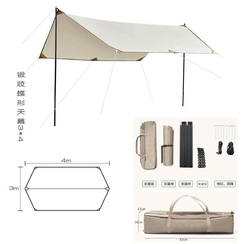야외 캐노피 휴대용 캠핑 그늘 헝겊 검은 고무 방비 선 스크린 텐트 캠핑 용품 접는 장비