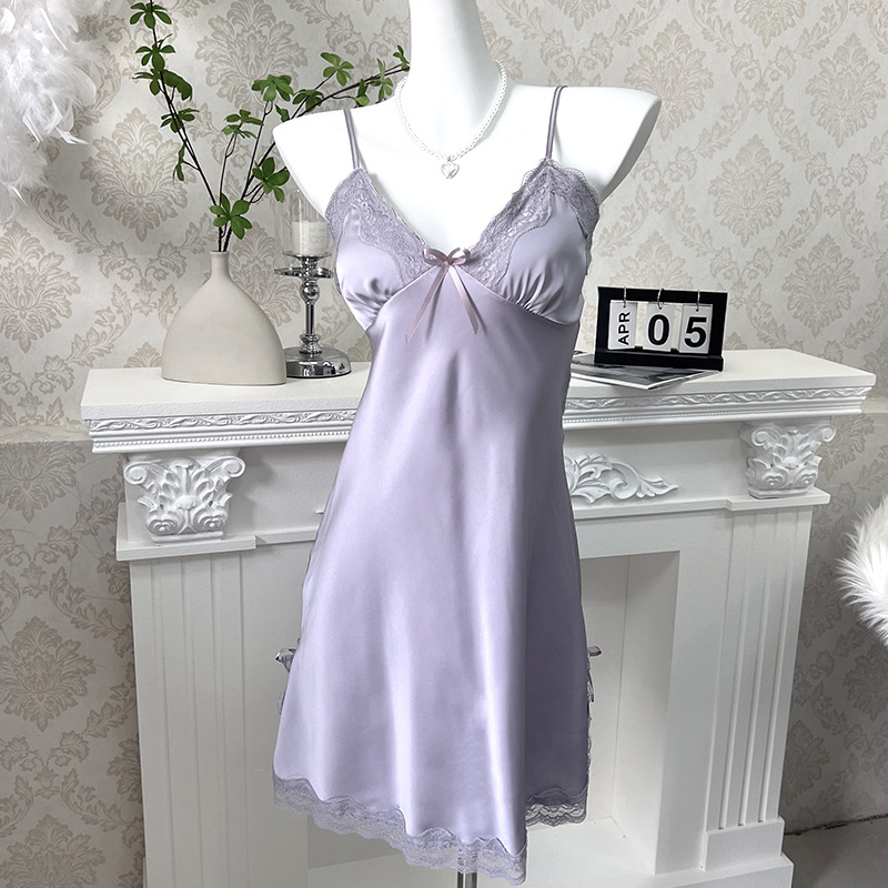 3080 아이스 실크 잠옷 여름 여성의 섹시한 잠옷 플러스 사이즈 순수한 욕망 슬링 유방 면 하이 엔드 프랑스 스타일 홈 옷스토어 가기