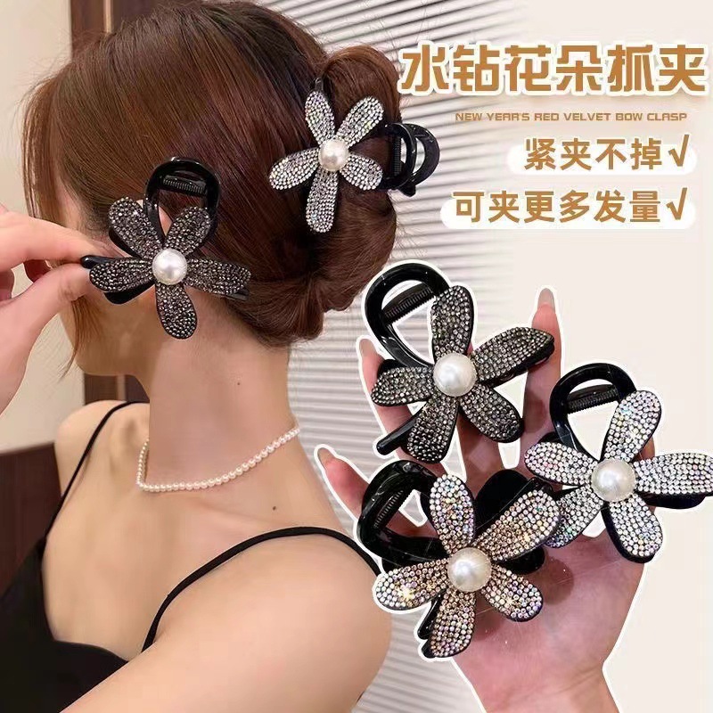 구슬 꽃 잡아 클립 스타 라이트 전체 다이아몬드 꽃 잡아 클립 라이트 럭셔리 우아한 새로운 하이 엔드 헤어 상어 클립 헤어 액세서리