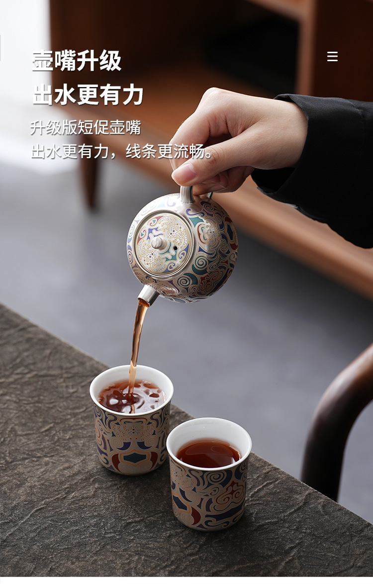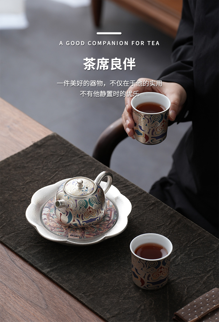 둔황 금과 실버 잘못 실버 한 냄비 두 컵 작은 세트 쿵푸 차 세트 아버지 장로들에게 고급 교사의 날 선물스토어 가기
