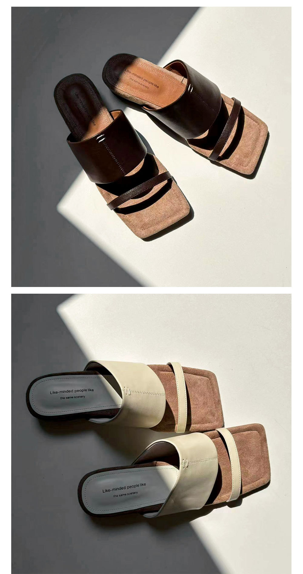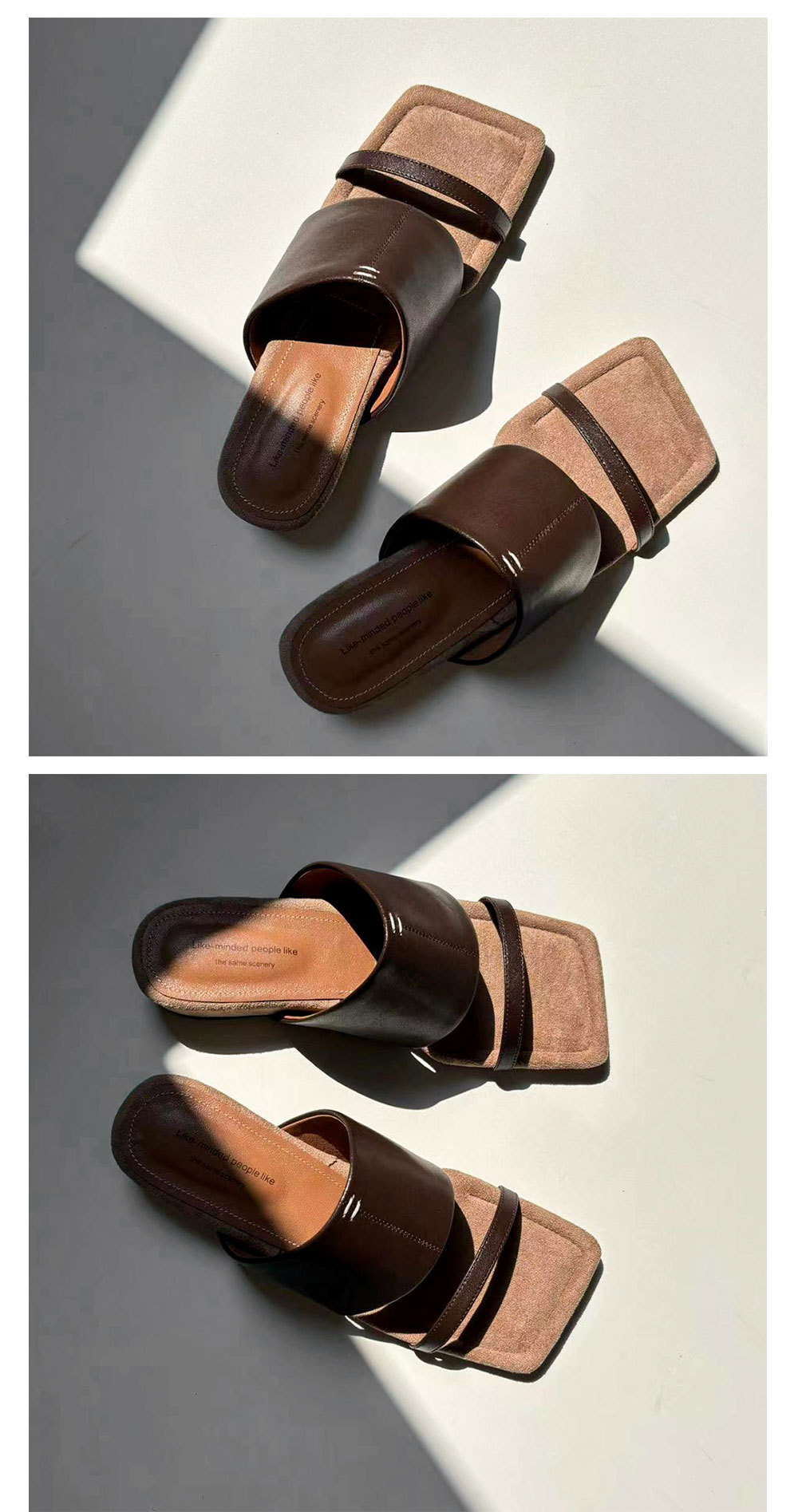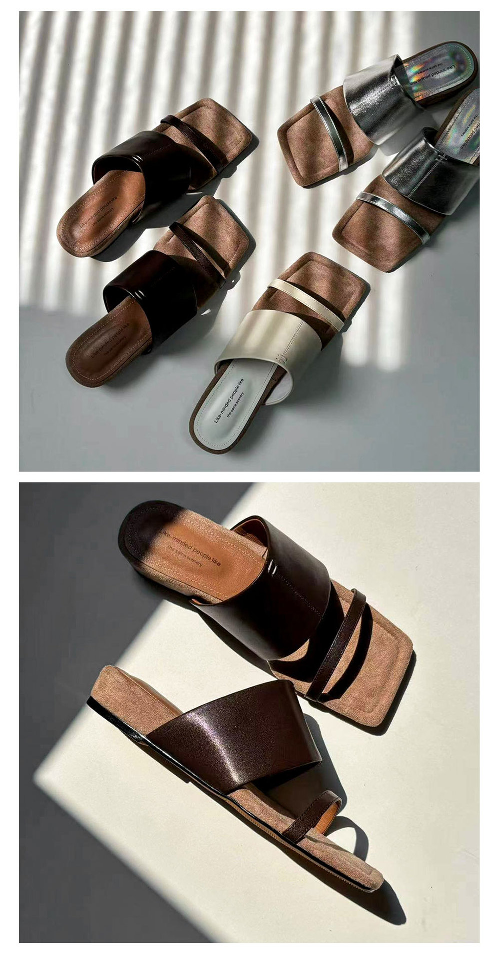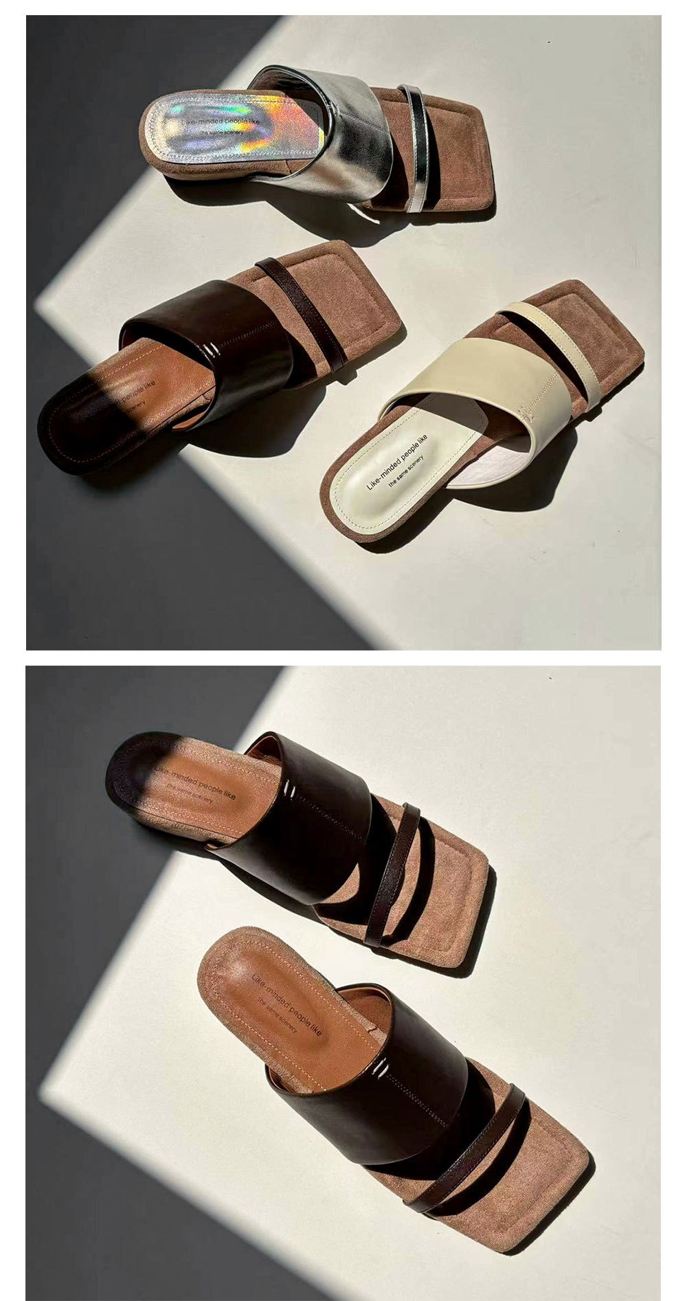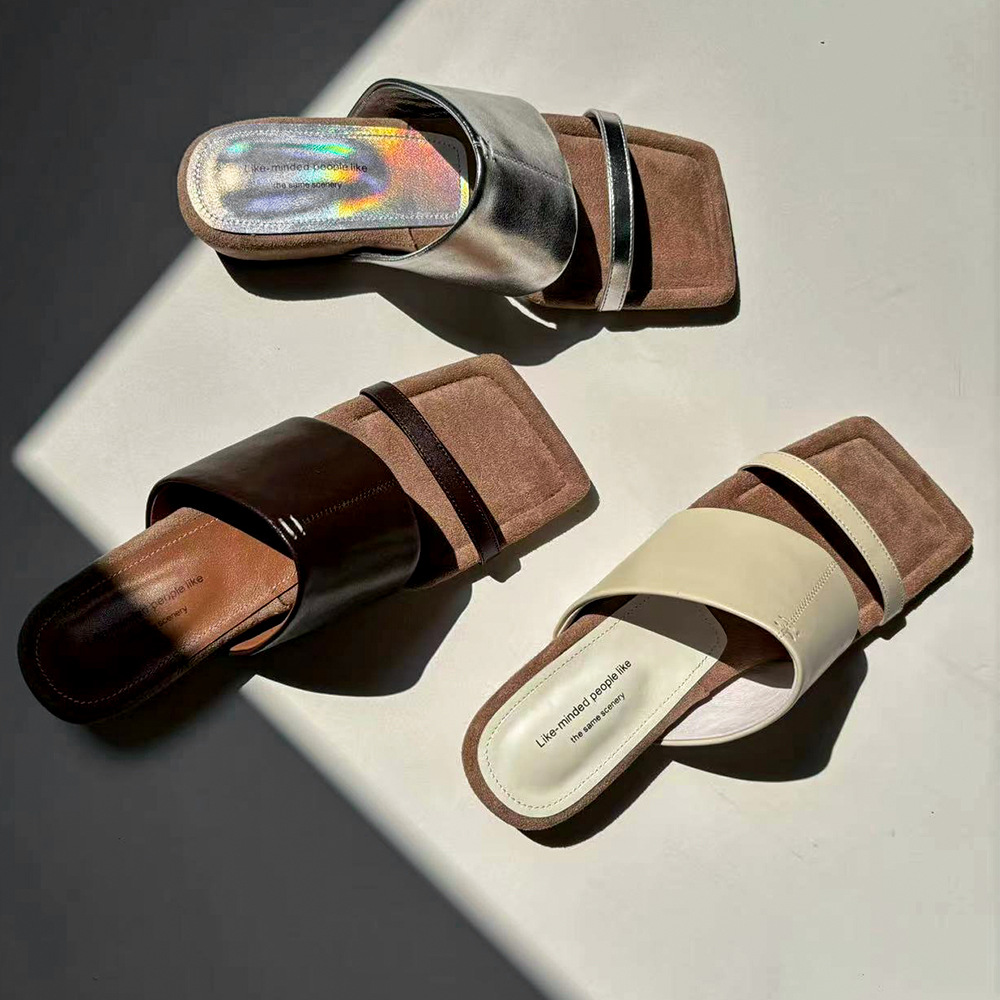 정품 가죽 샌들과 슬리퍼를 입고 유럽과 미국의 간단한 여름 외부 여성의 새로운 유행 올 매치 스퀘어 오픈 발가락 웨지 슬리퍼스토어 가기