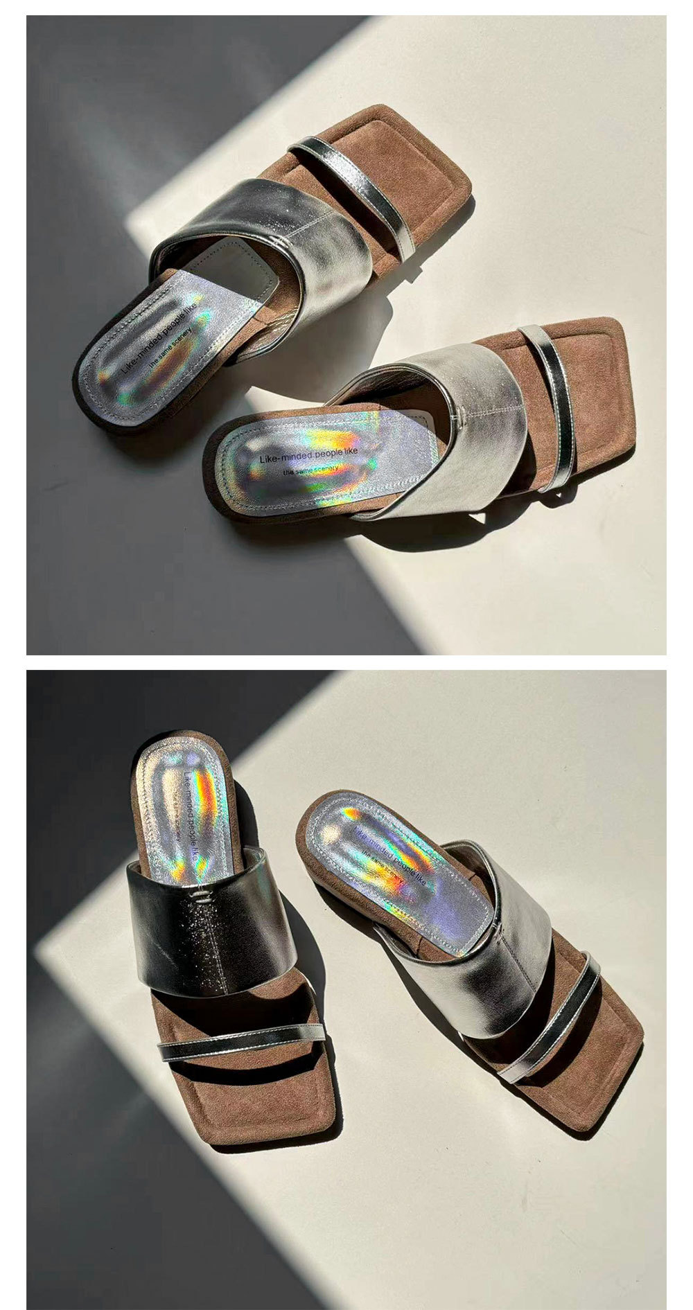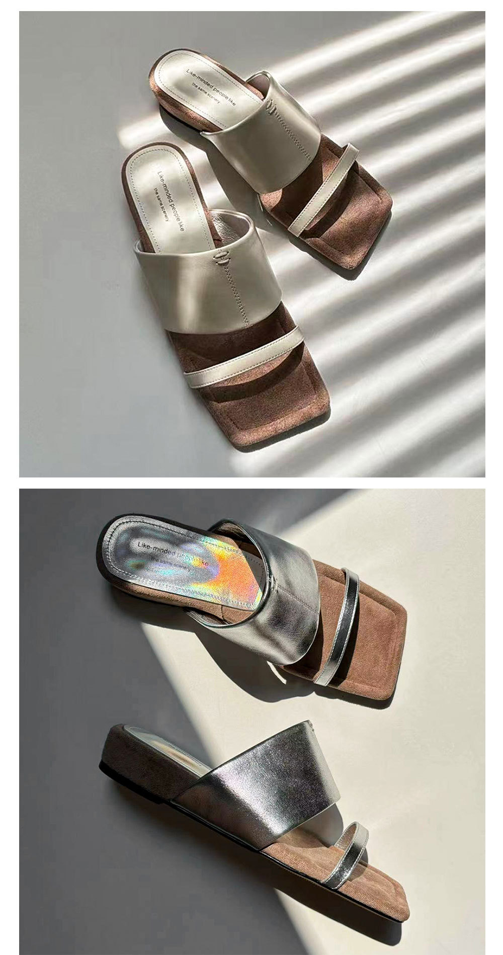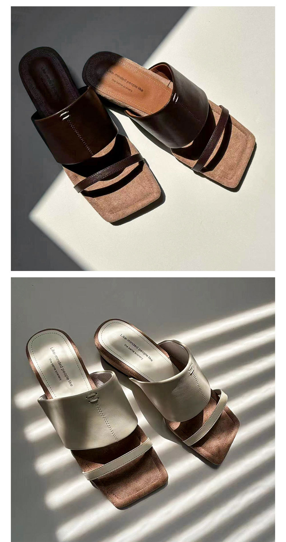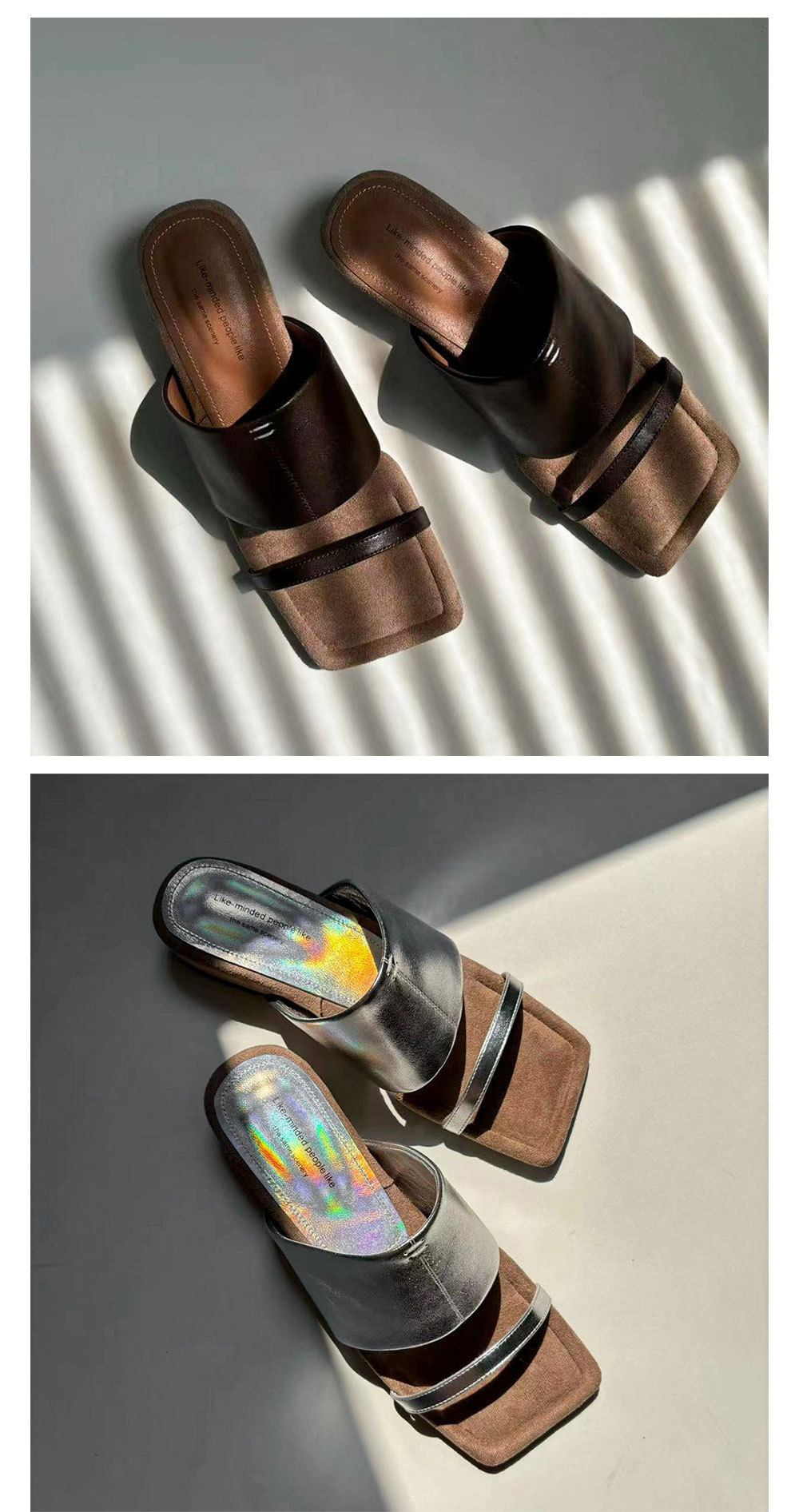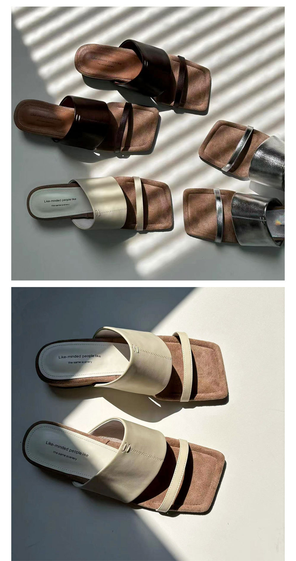 정품 가죽 샌들과 슬리퍼를 입고 유럽과 미국의 간단한 여름 외부 여성의 새로운 유행 올 매치 스퀘어 오픈 발가락 웨지 슬리퍼스토어 가기