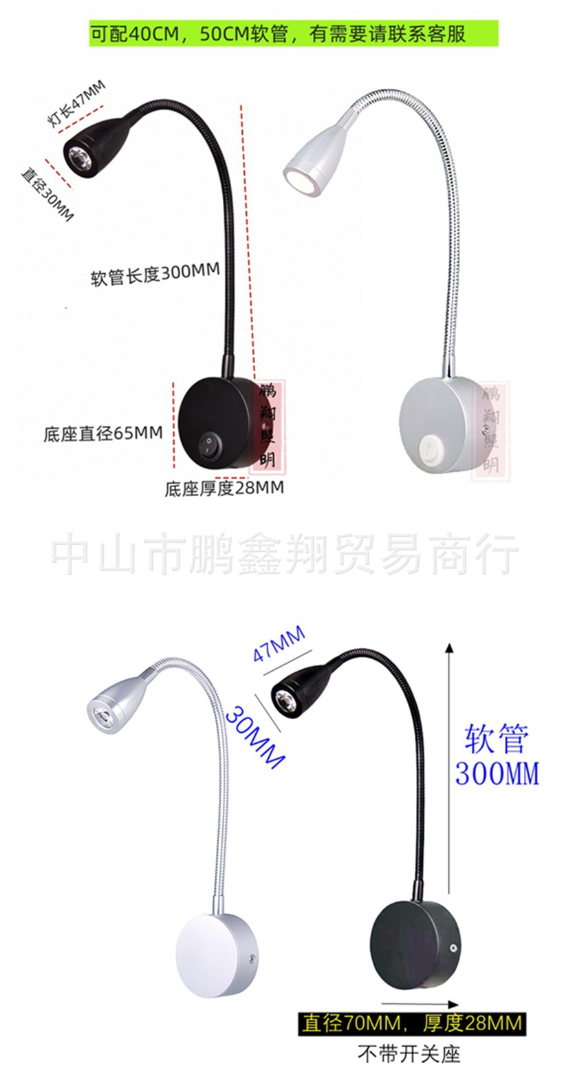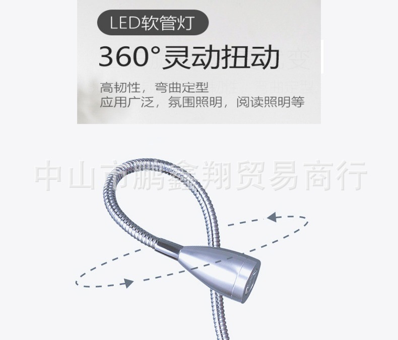本款LED灯标配灯杆长度为30CM,可根据需要随意弯曲方向