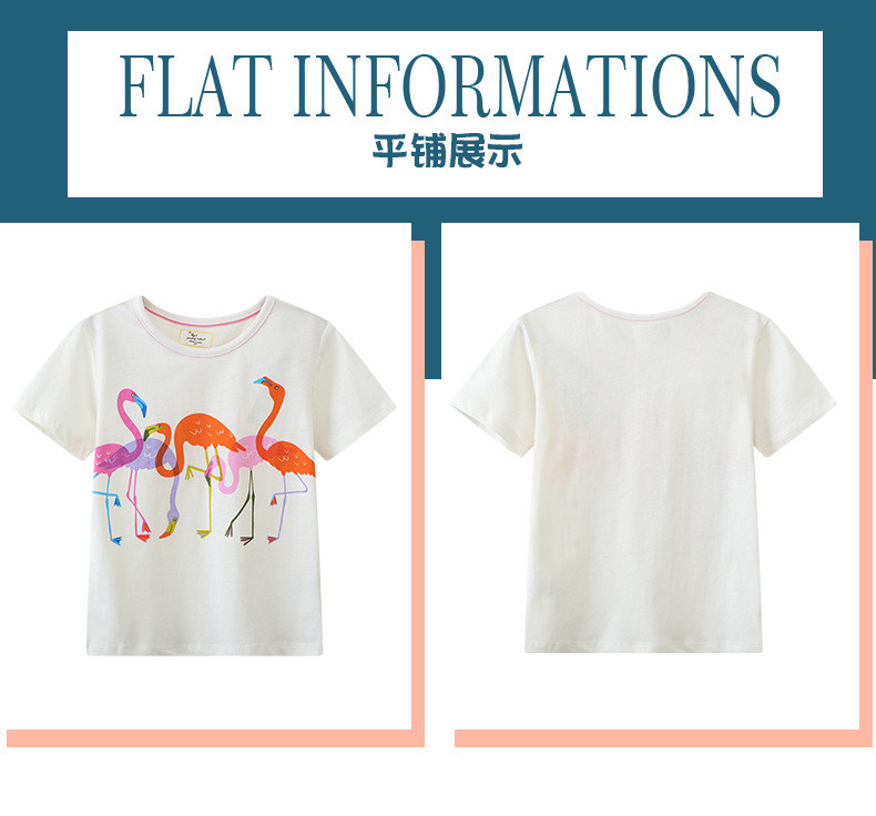 여름 여아 티셔츠 유럽 및 미국 스타일 어린이 플라밍고 꽃무늬 니트 면 라운드넥 풀오버 어린이 상의 도매스토어 가기