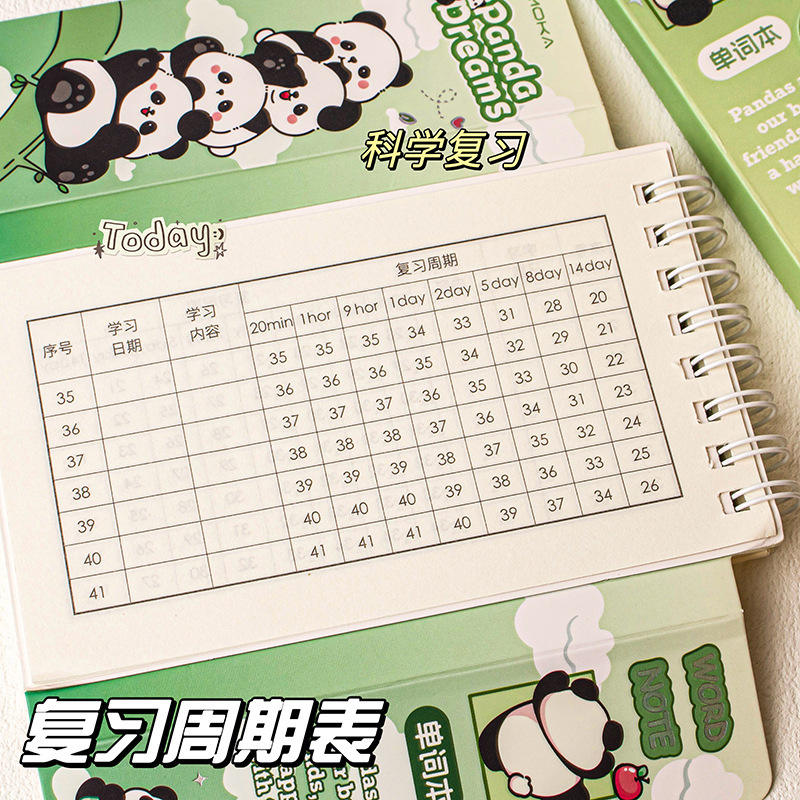 중학교 학생을위한 귀여운 만화 팬더 워드 북 휴대용 코일 북 높은 색상 가치 포켓 북 도매스토어 가기