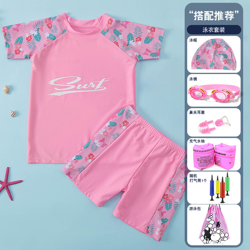 • 066 작은 핑크 꽃 3 피스 세트 [수영복 수영 트렁크 모자]