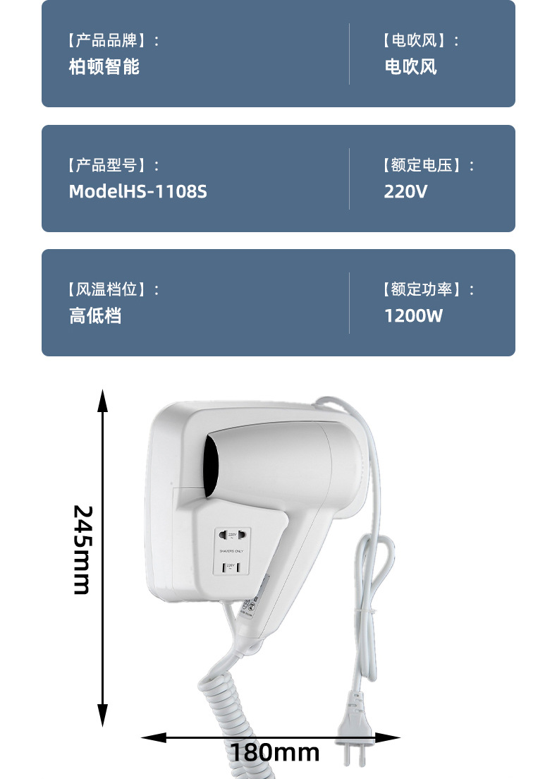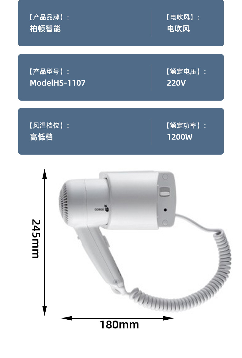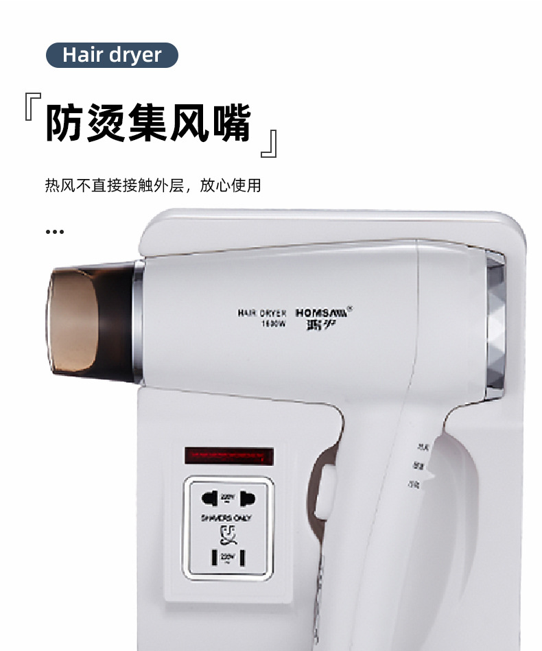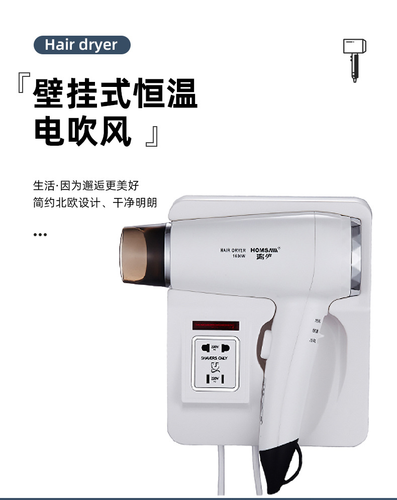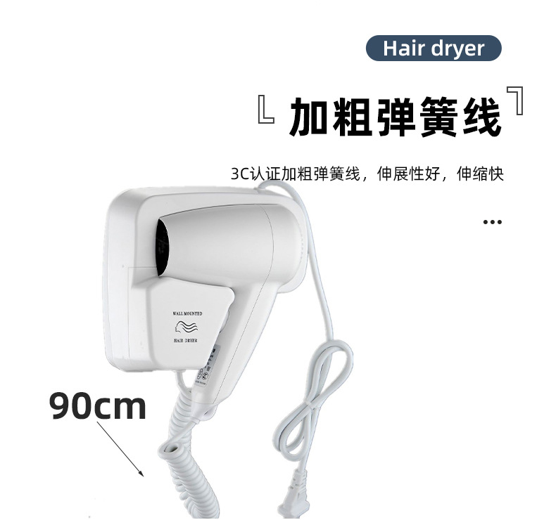 벽걸이형 1600W1200W 호텔 헤어드라이어 욕실용 고출력 헤어드라이어 호텔용 해외배송