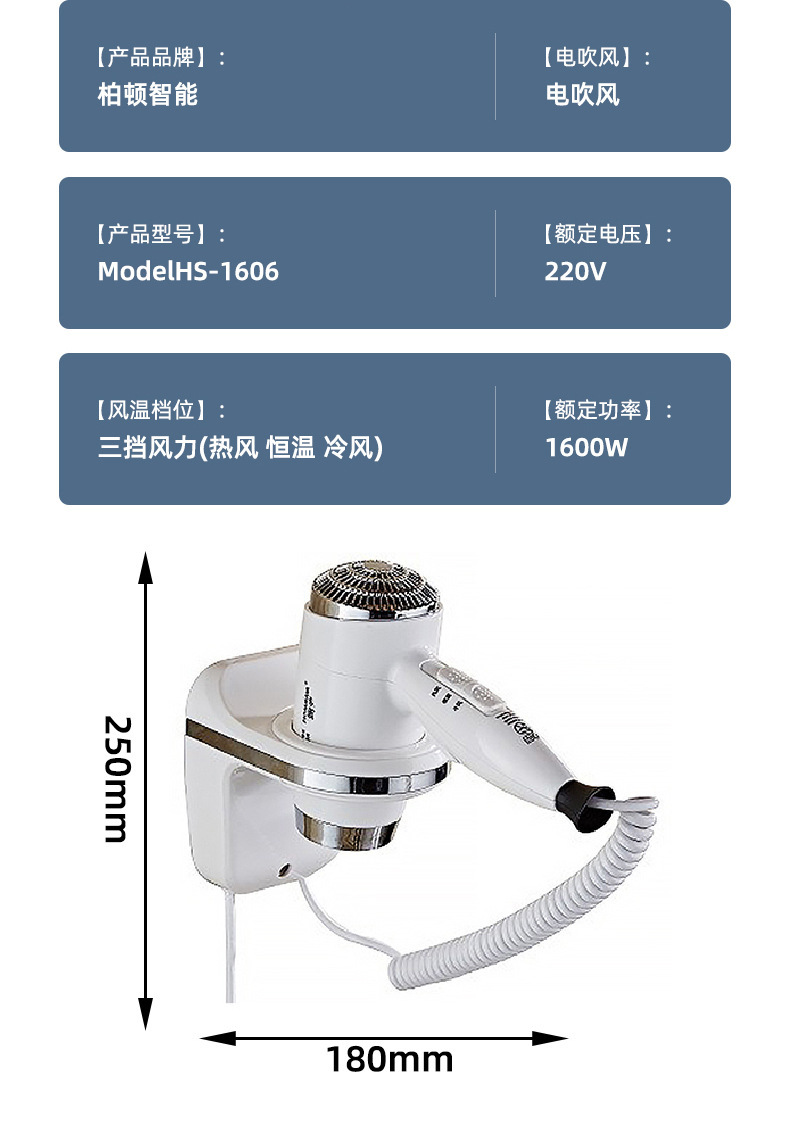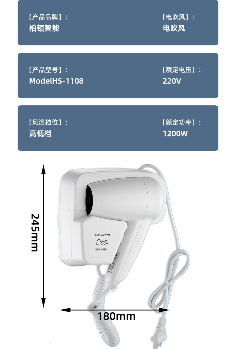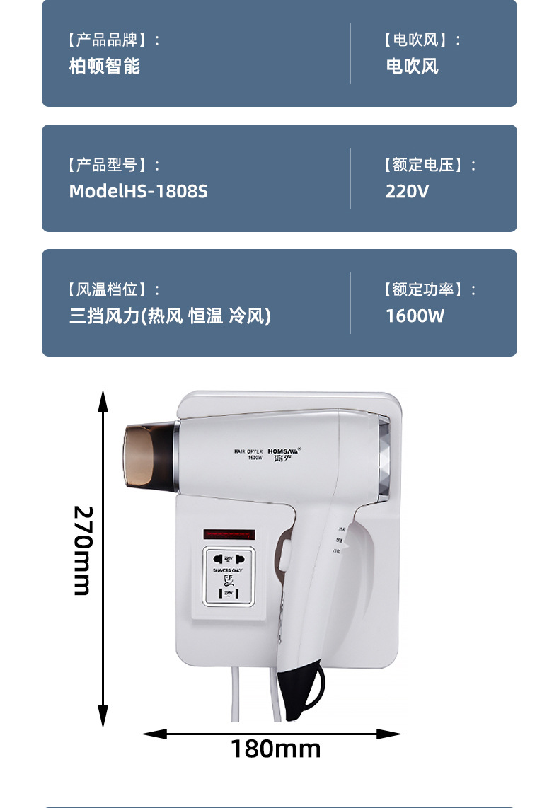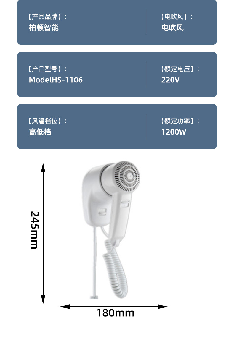 벽걸이형 1600W1200W 호텔 헤어드라이어 욕실용 고출력 헤어드라이어 호텔용 해외배송