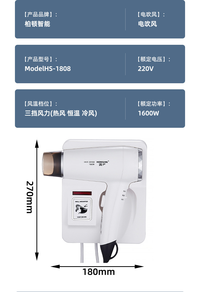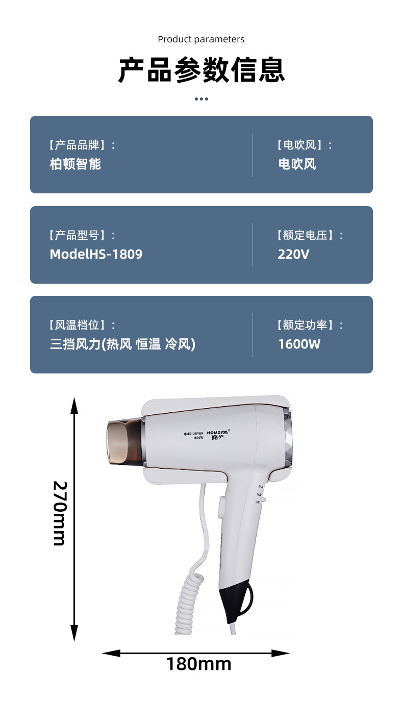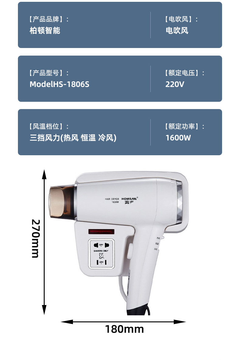 벽걸이형 1600W1200W 호텔 헤어드라이어 욕실용 고출력 헤어드라이어 호텔용 해외배송스토어 가기