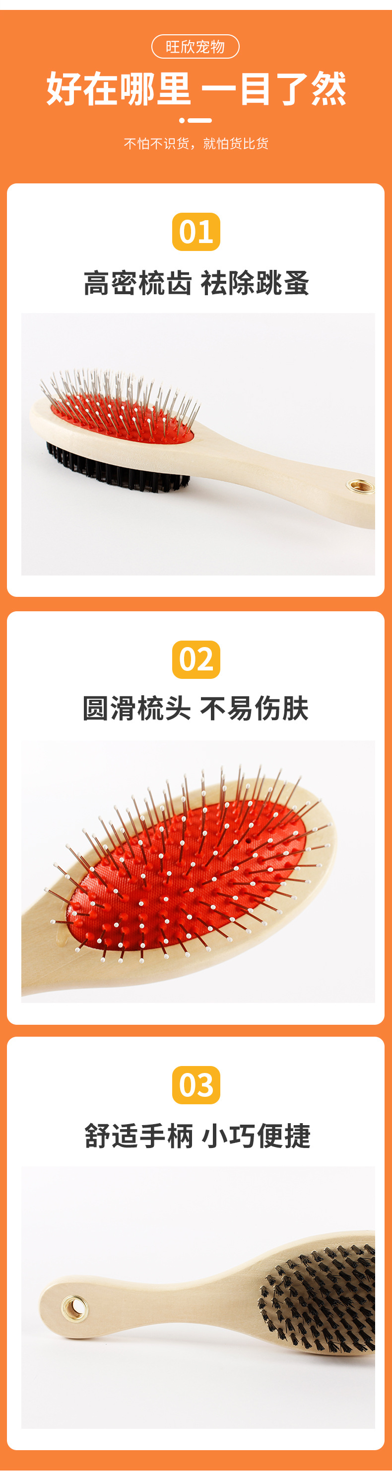 애완 동물 빗 브러시 제조 업체 도매 고양이 청소 양면 빗 나무 손잡이 이중 목적 빗 개 양면 바늘 빗