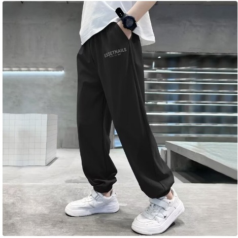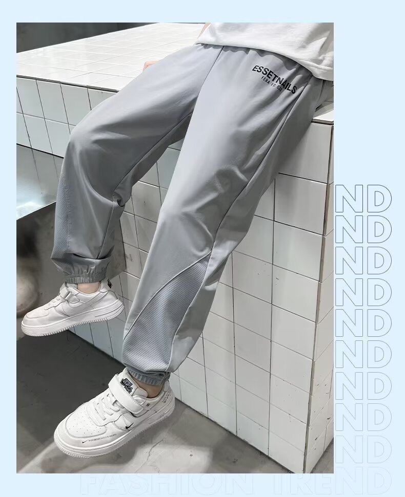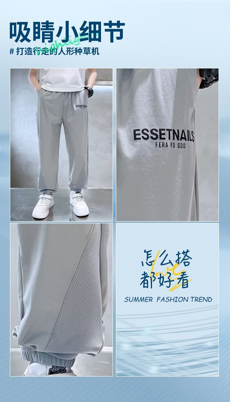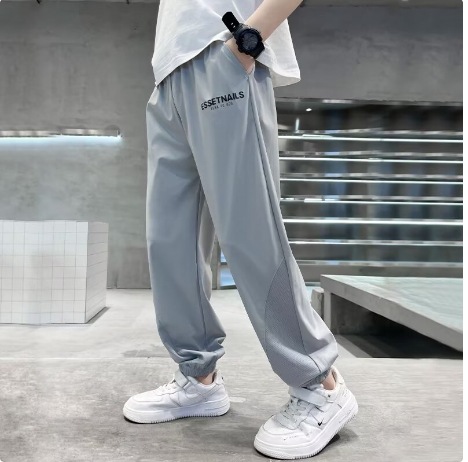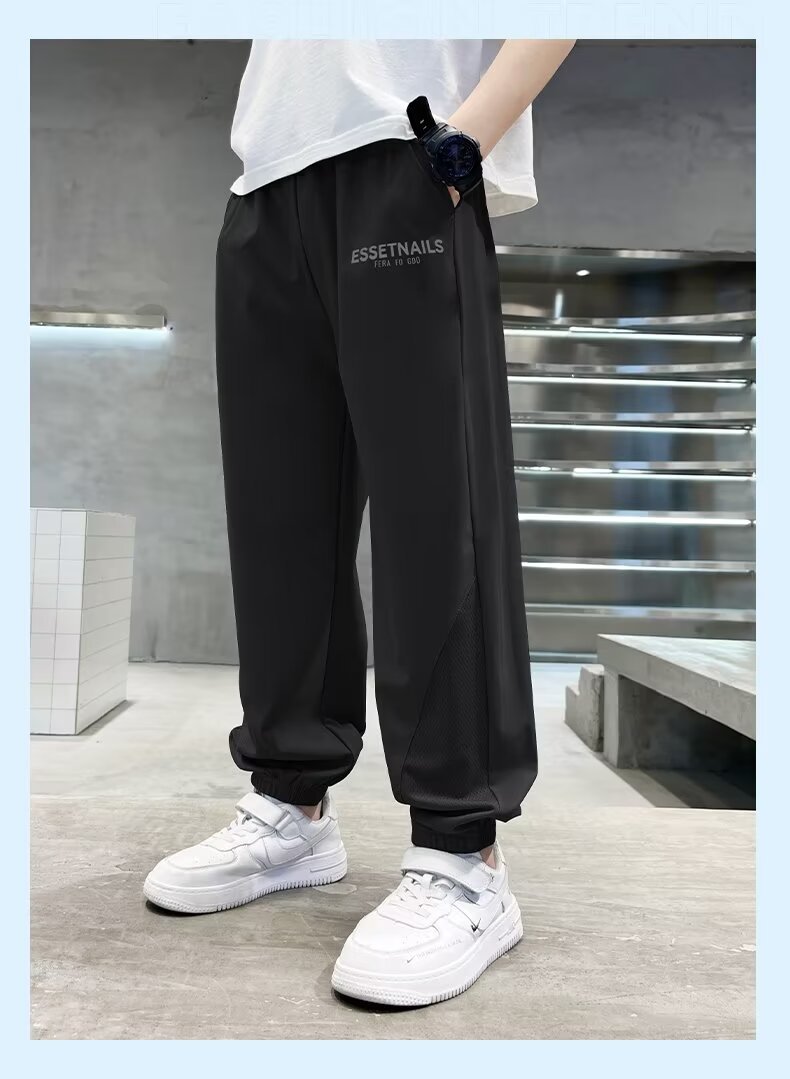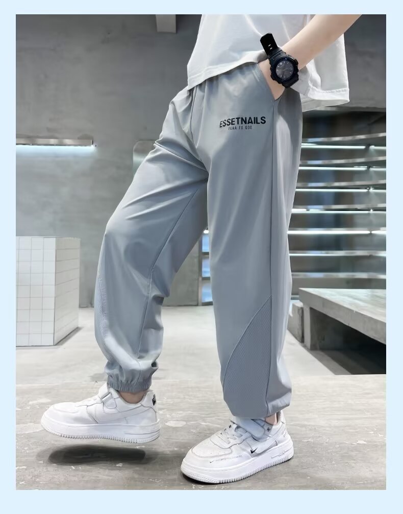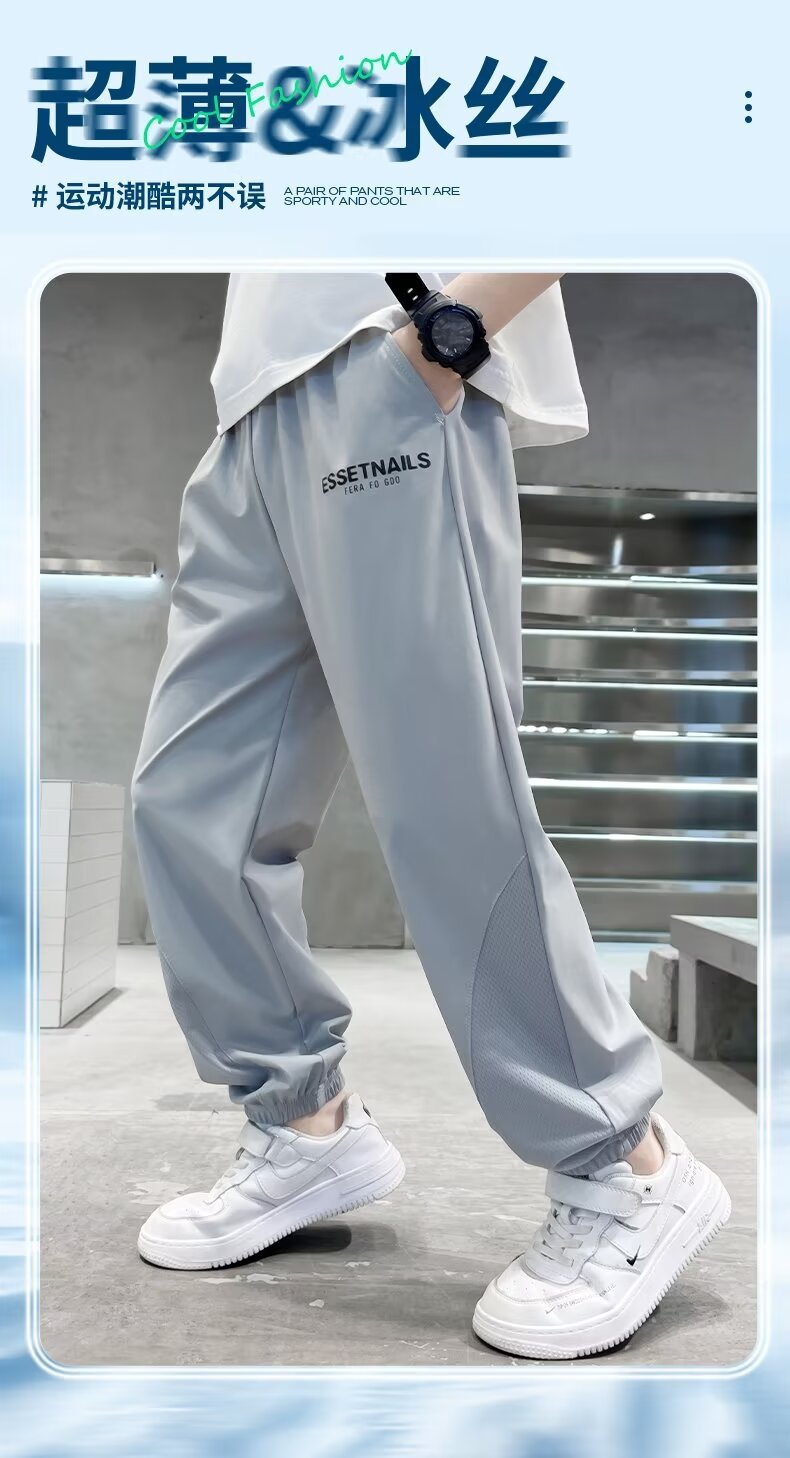 소년 아이스 실크 얇은 모기 방지 바지 2024 여름 새로운 스포츠 바지 큰 소년의 여름 빠른 건조 발목 바지