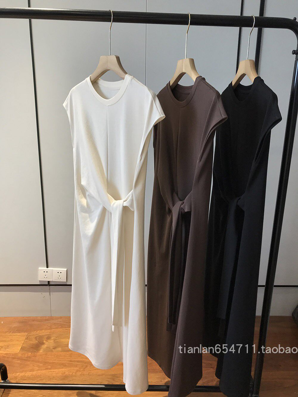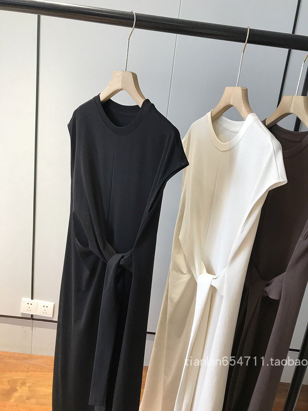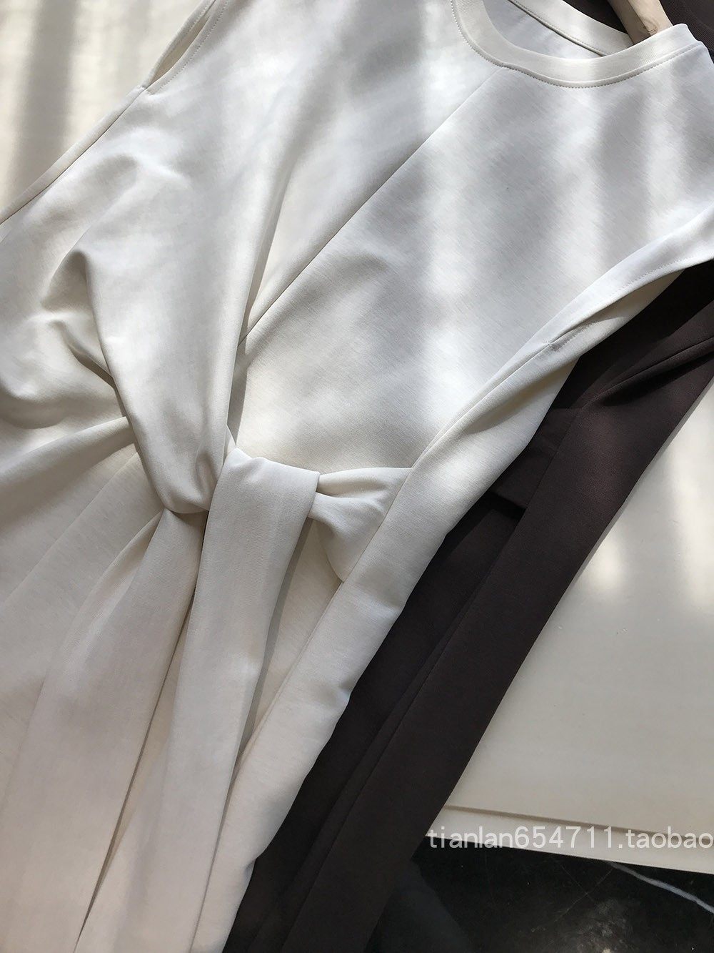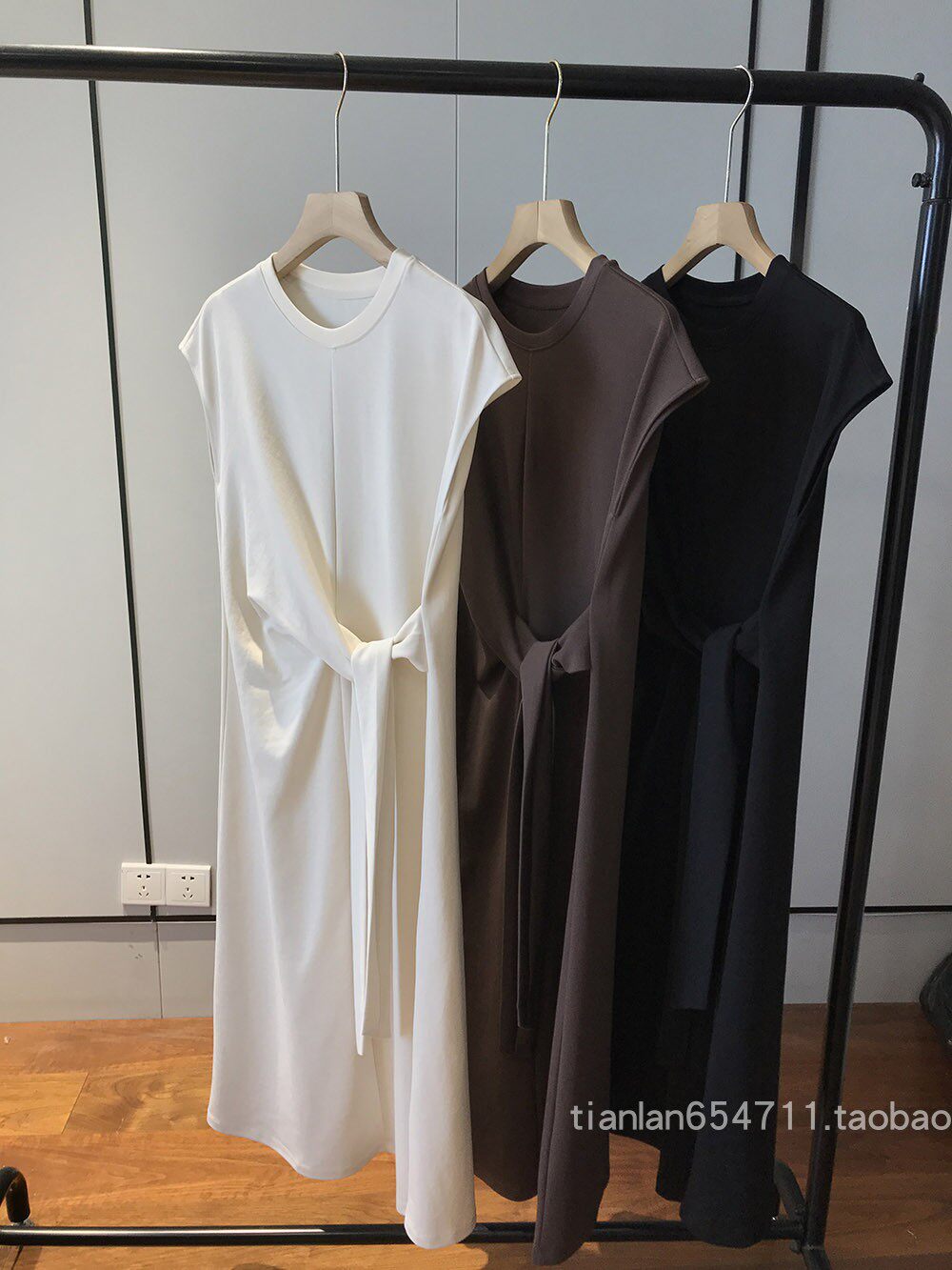 这款没有收腰线,但是是通过腰部系带打结设计