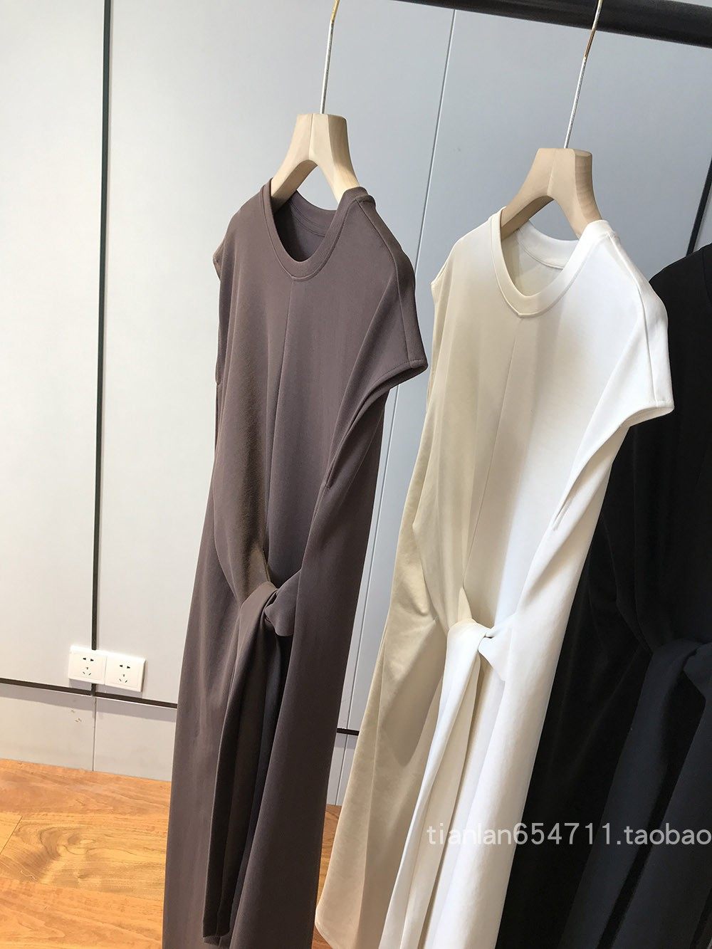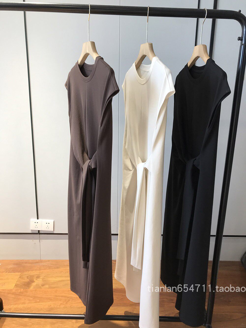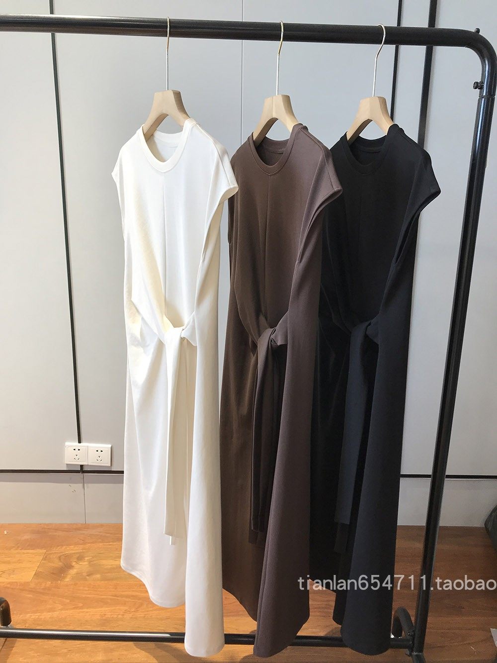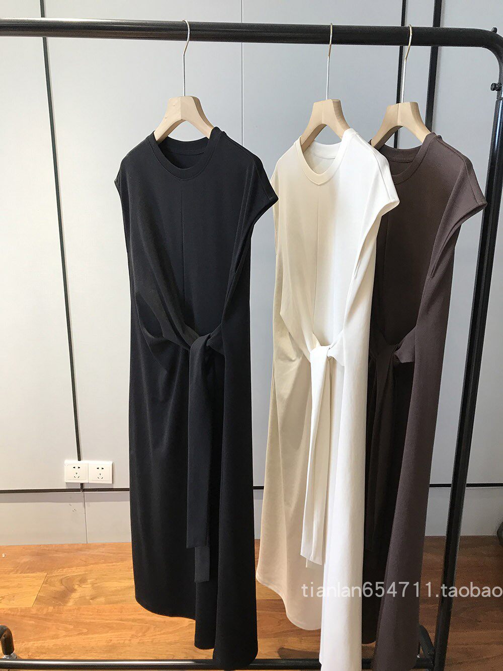 这款没有收腰线,但是是通过腰部系带打结设计