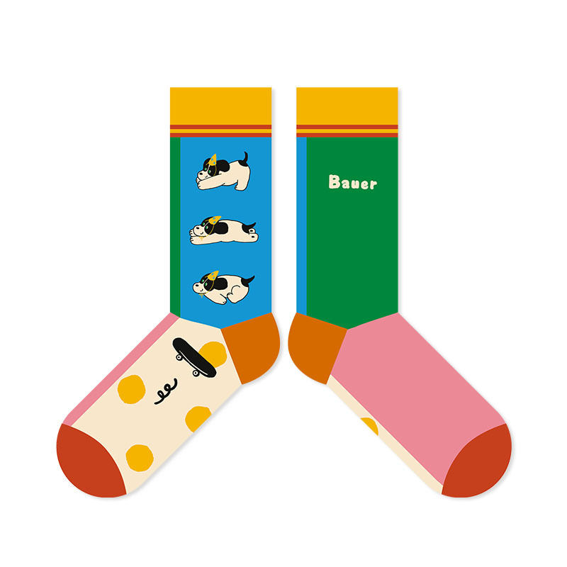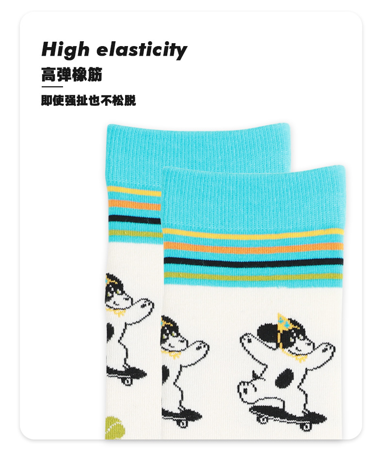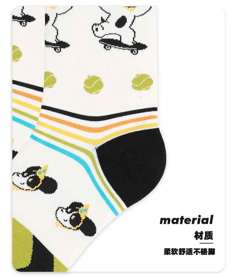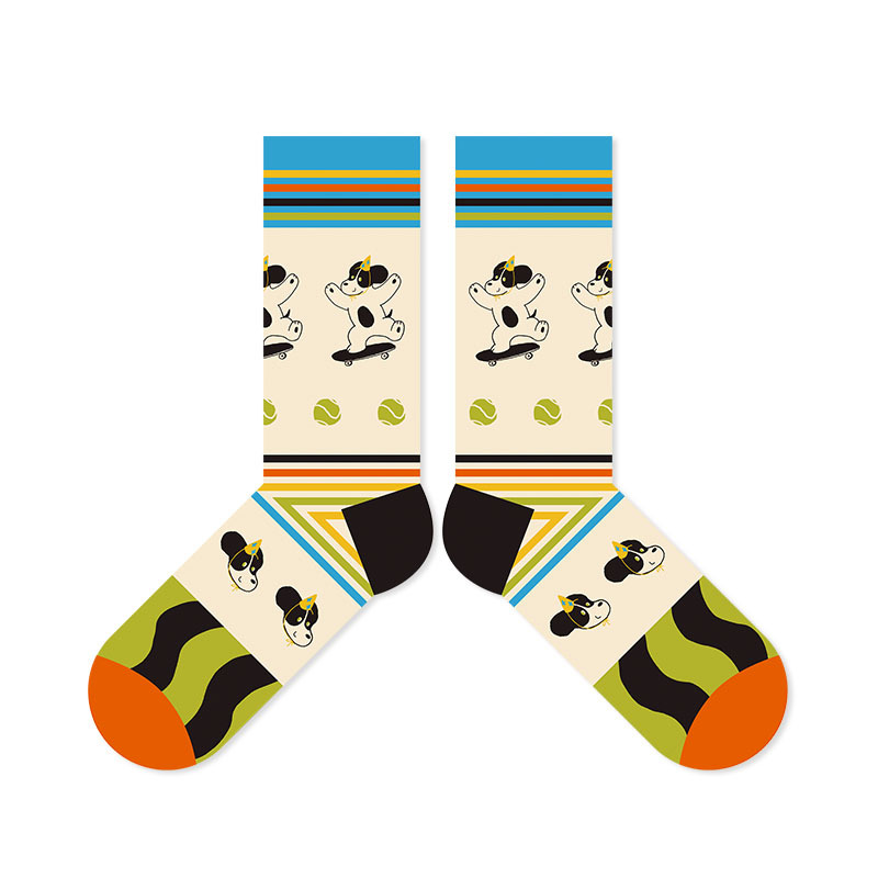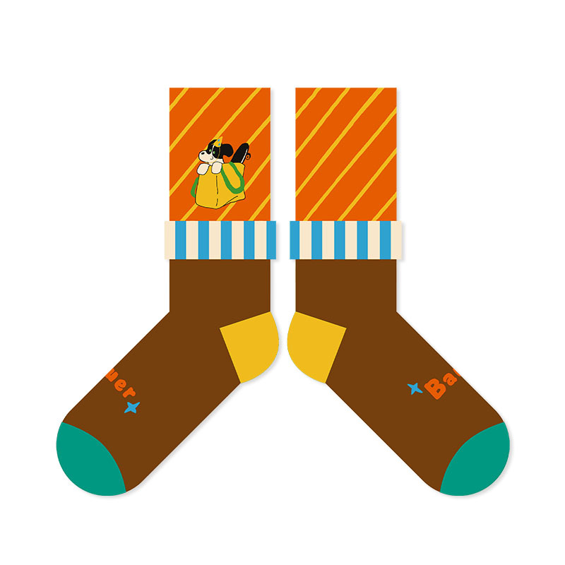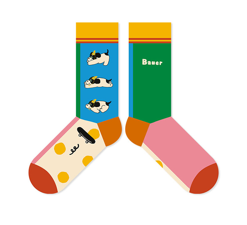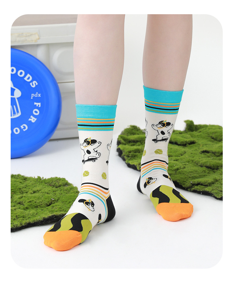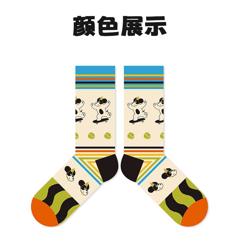 여름 새로운 만화 귀여운 줄무늬 바우어 강아지 중간 튜브 양말 여성 패션 패션 일러스트 코튼 양말 남성 땀 흡수