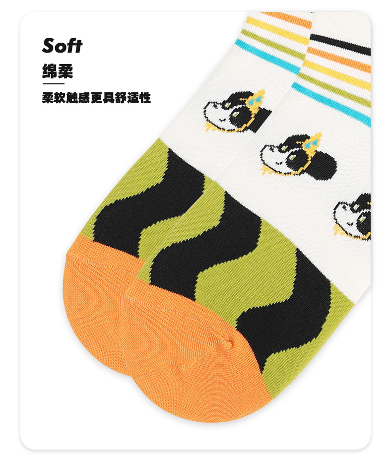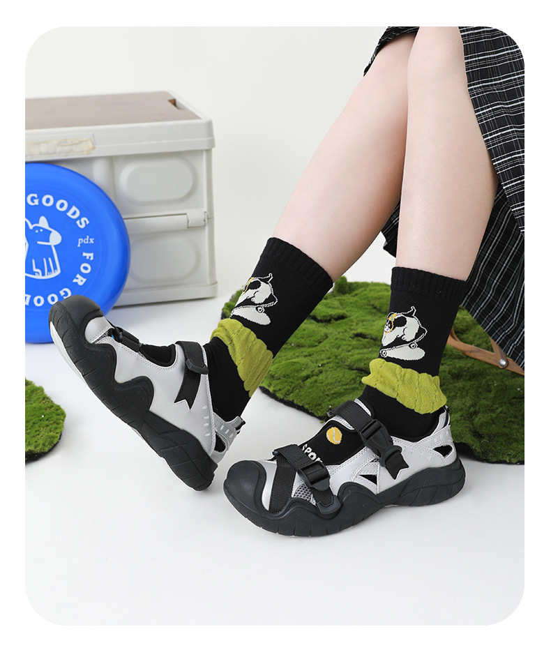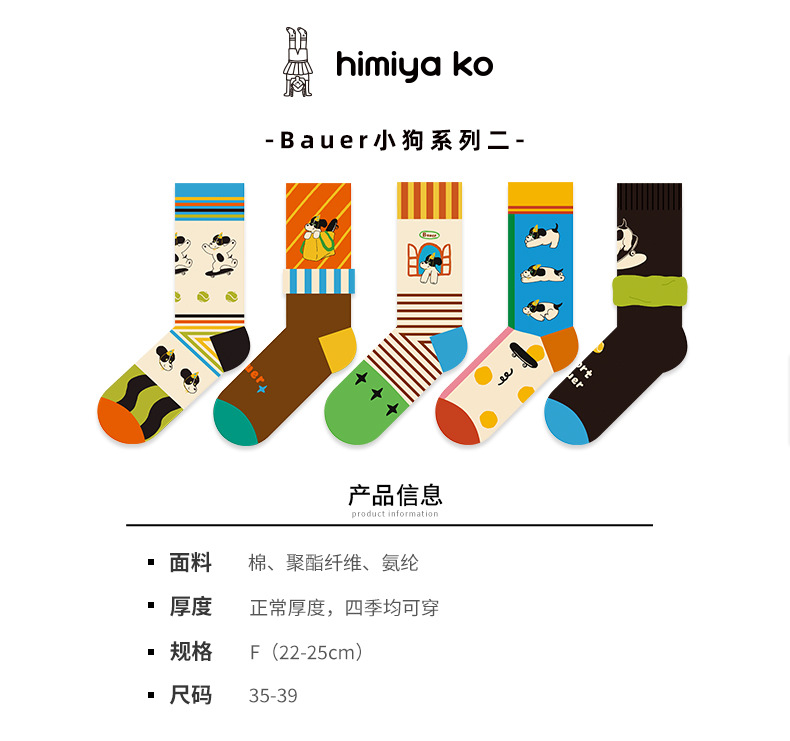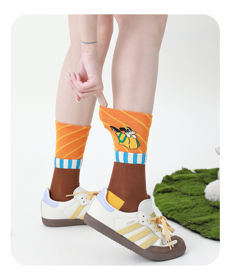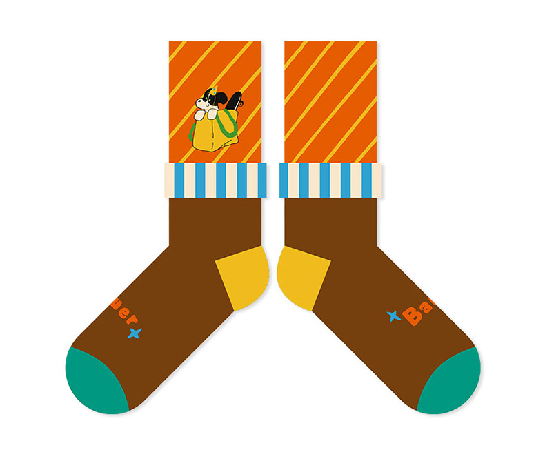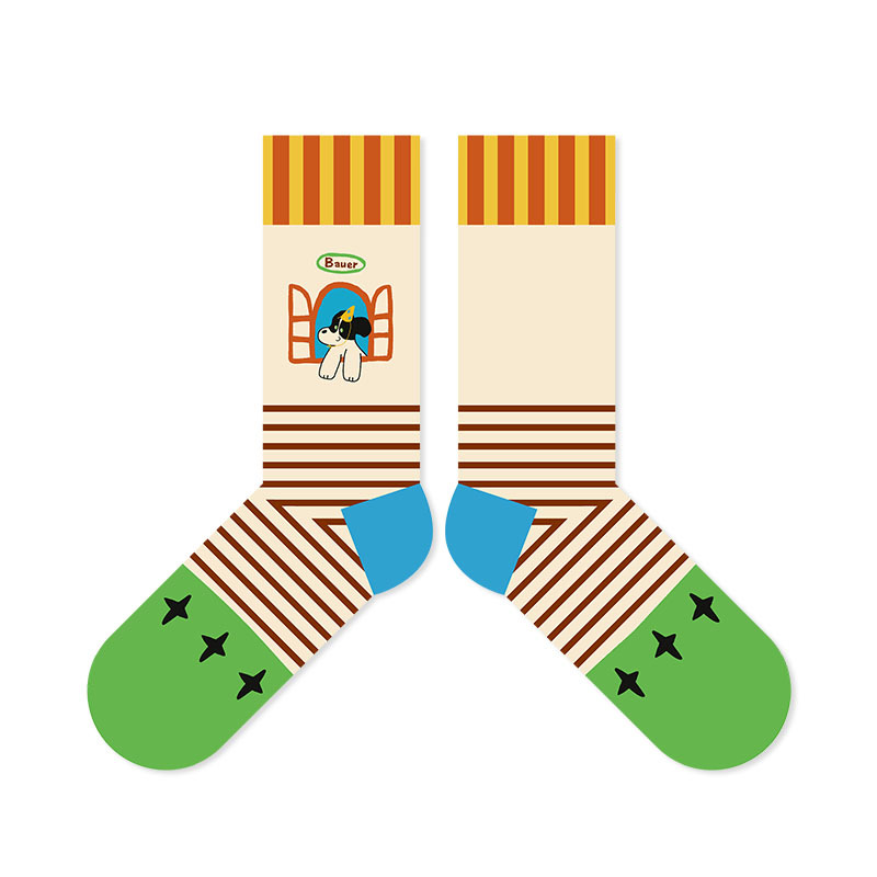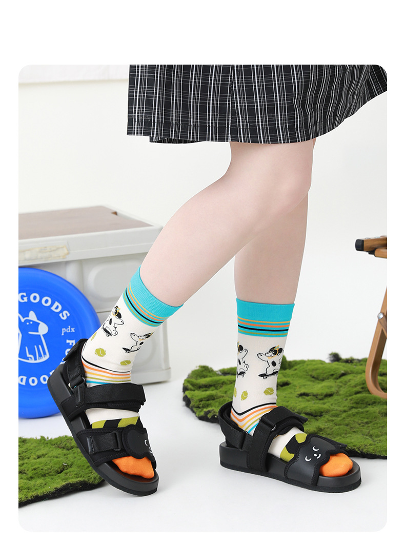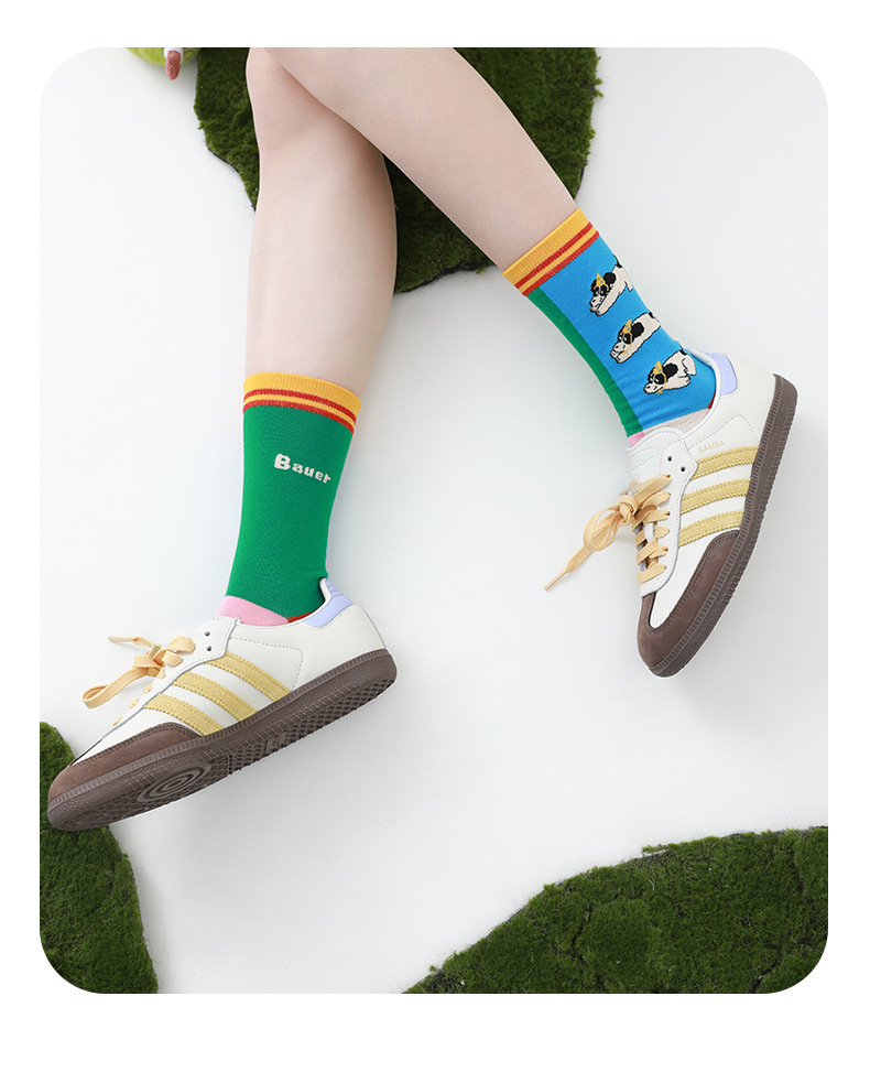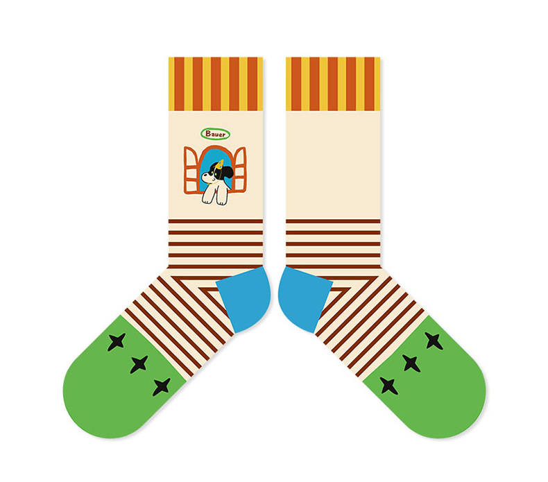 여름 새로운 만화 귀여운 줄무늬 바우어 강아지 중간 튜브 양말 여성 패션 패션 일러스트 코튼 양말 남성 땀 흡수스토어 가기