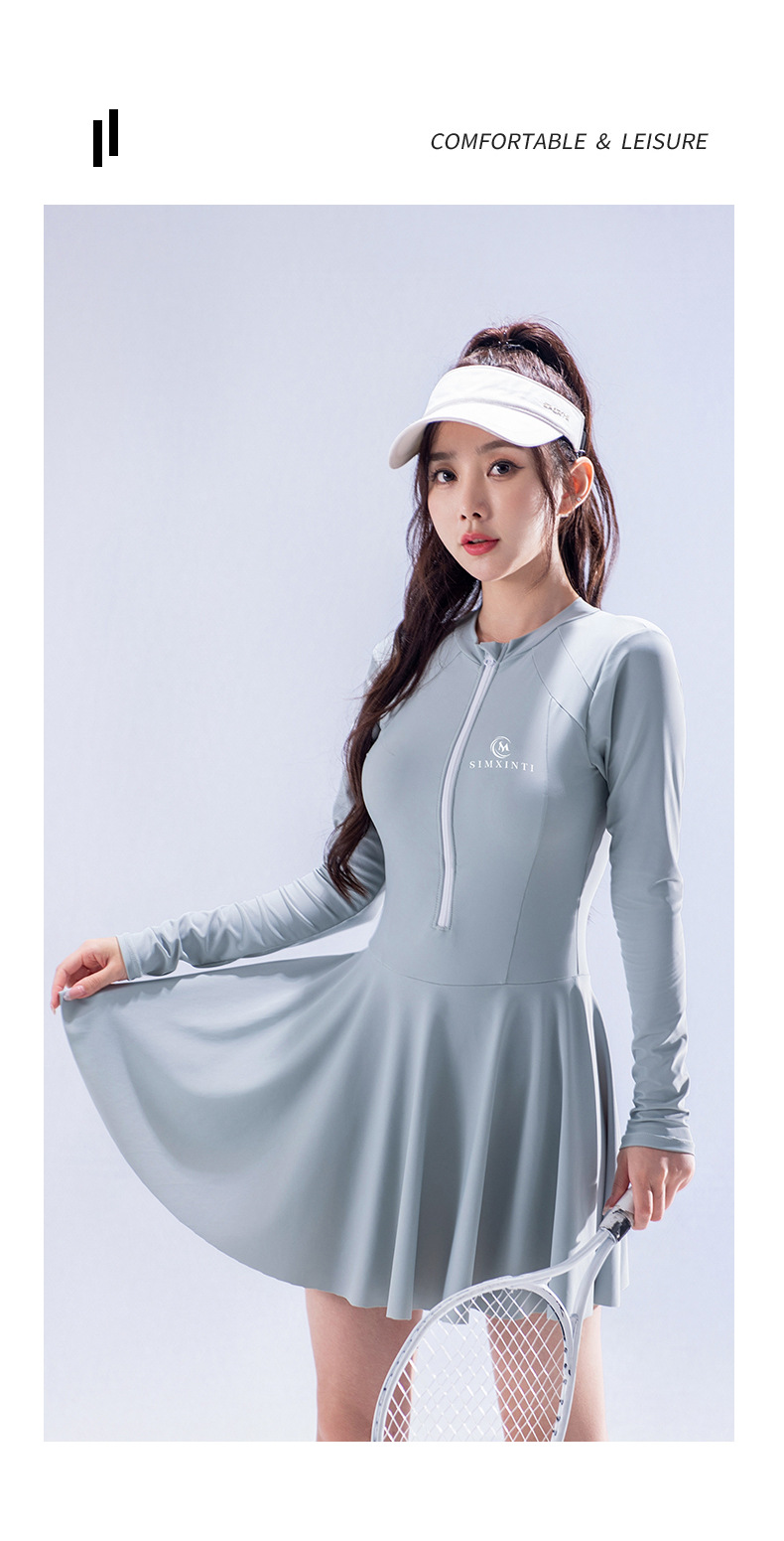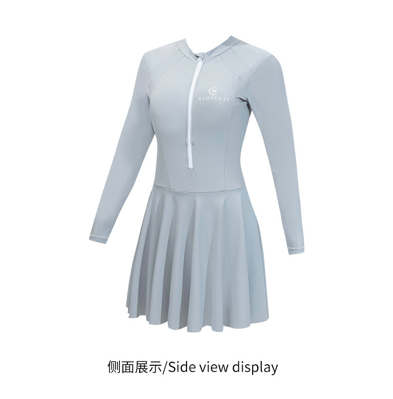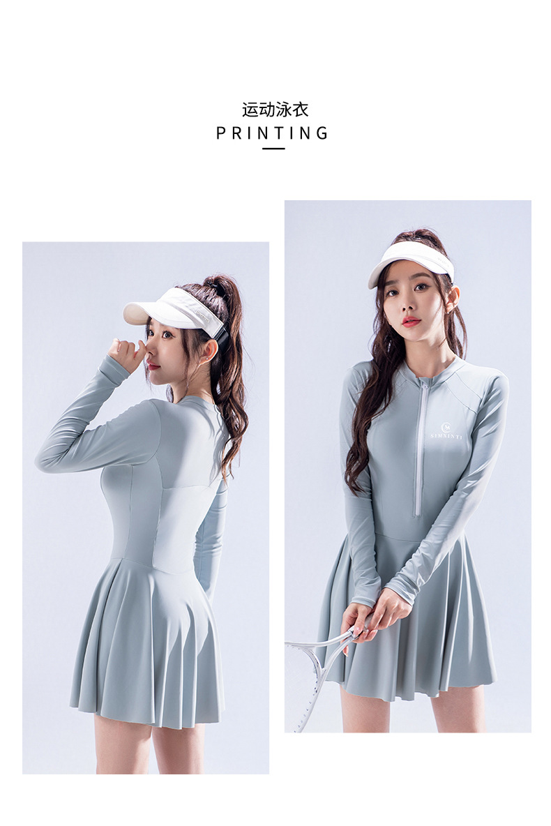 2024 새로운 도착 수영복 성인 여성의 긴 소매 태양 방지 단색 지퍼 스커트 수영복 슬림 핏 다이빙 세트