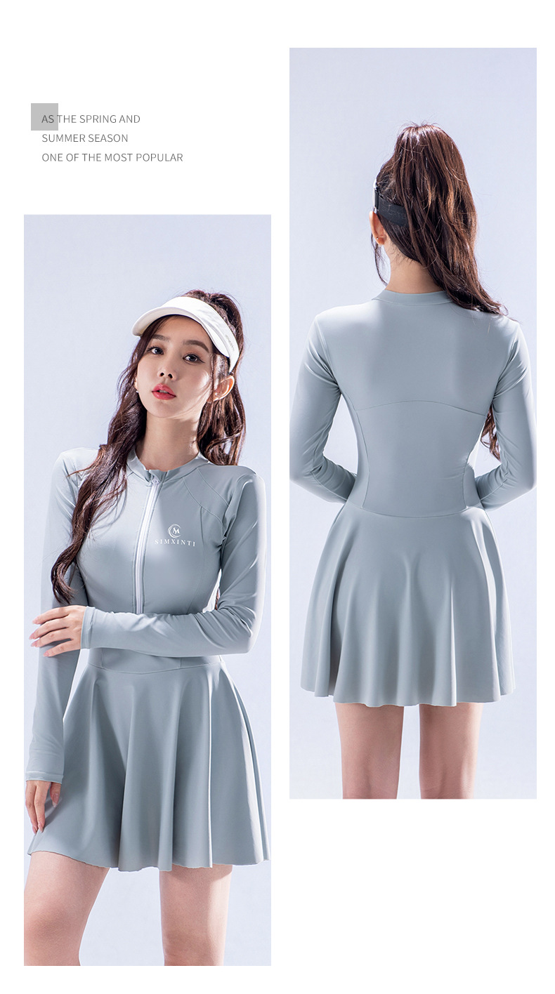 2024 새로운 도착 수영복 성인 여성의 긴 소매 태양 방지 단색 지퍼 스커트 수영복 슬림 핏 다이빙 세트스토어 가기