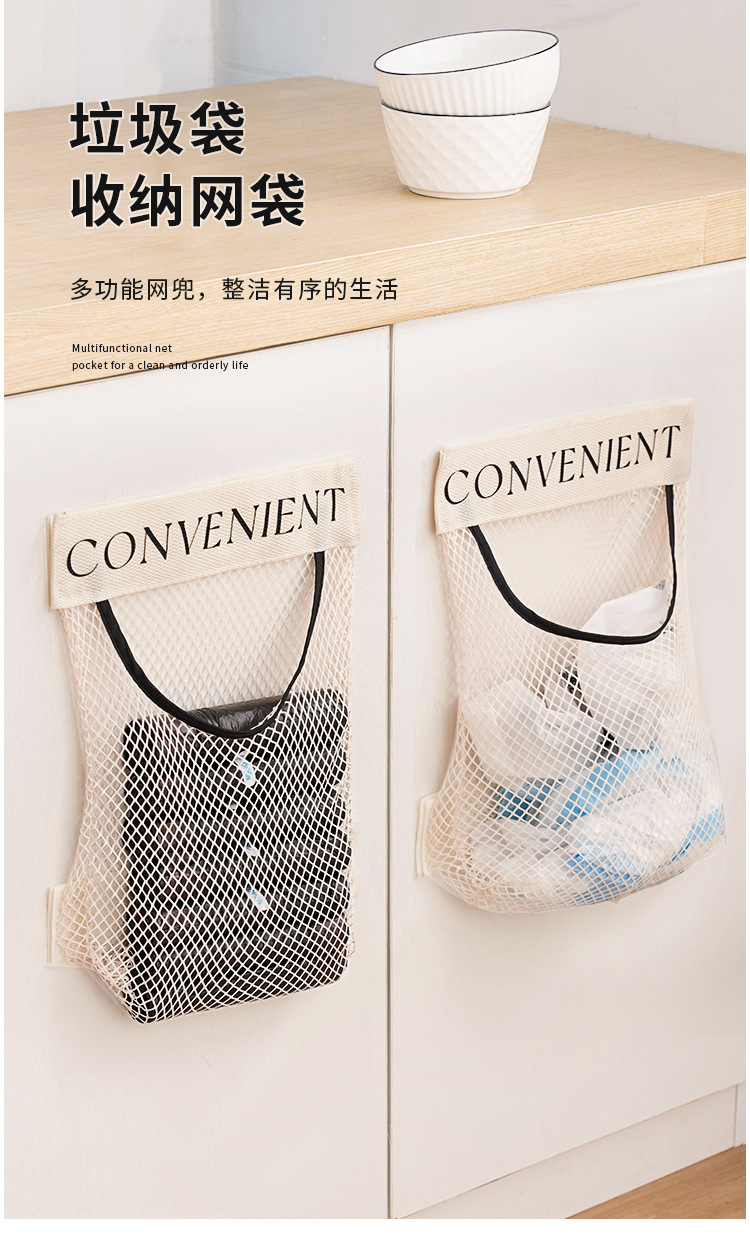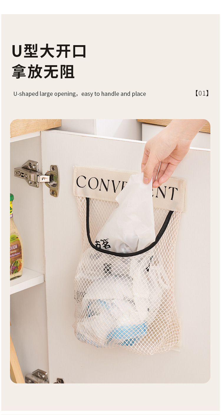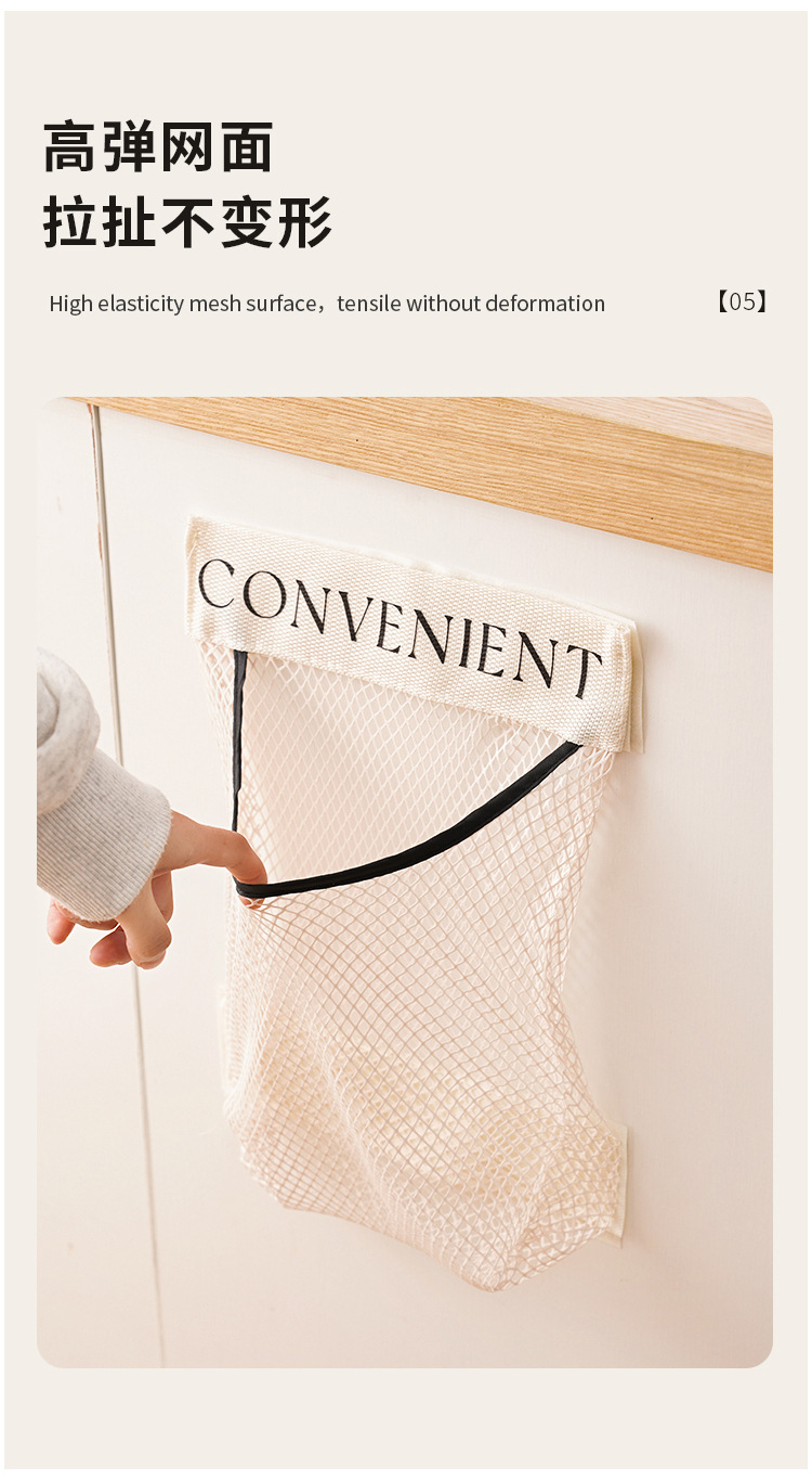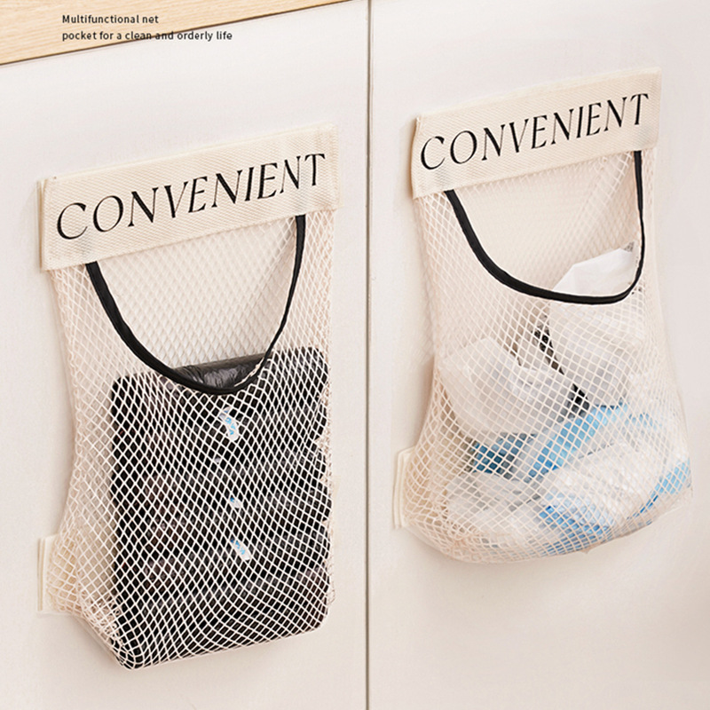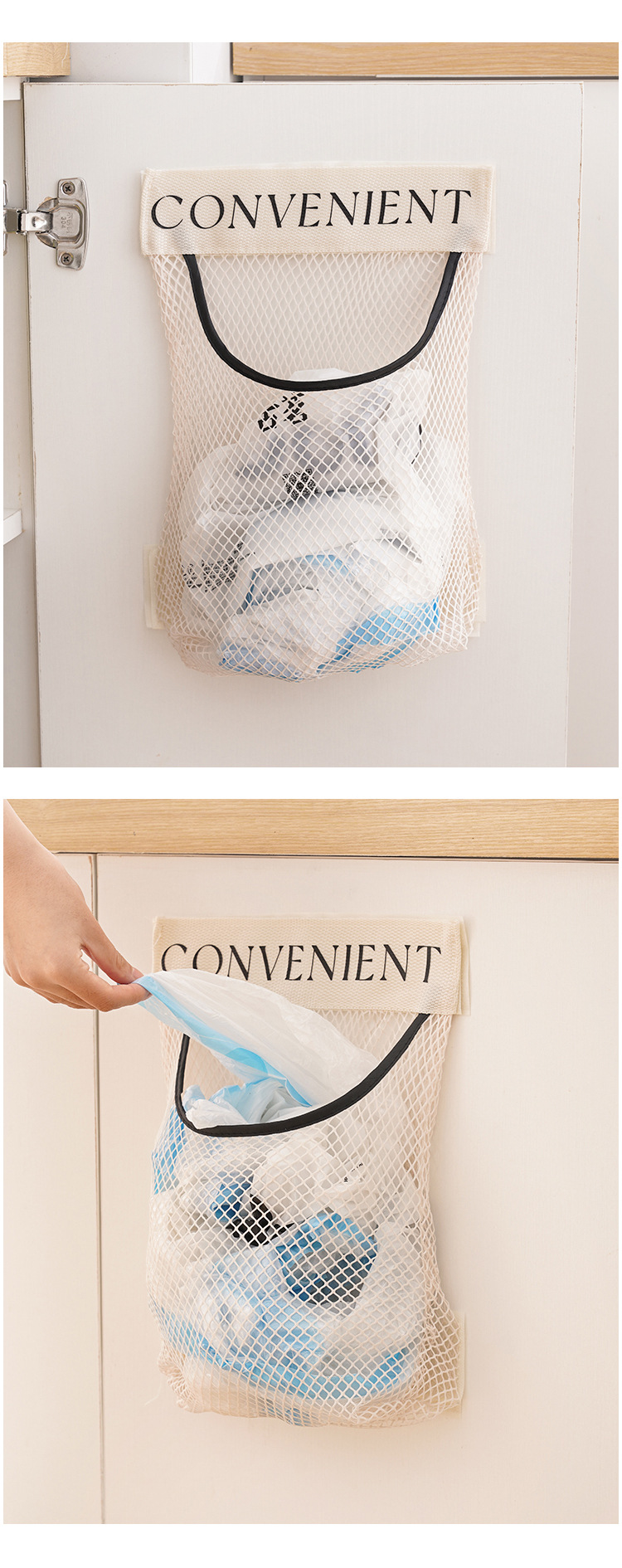 한국식 주방 쓰레기 봉투 보관 벽 장착 보관 가방 대용량 비닐 봉지 저장 벨크로 그물 포켓