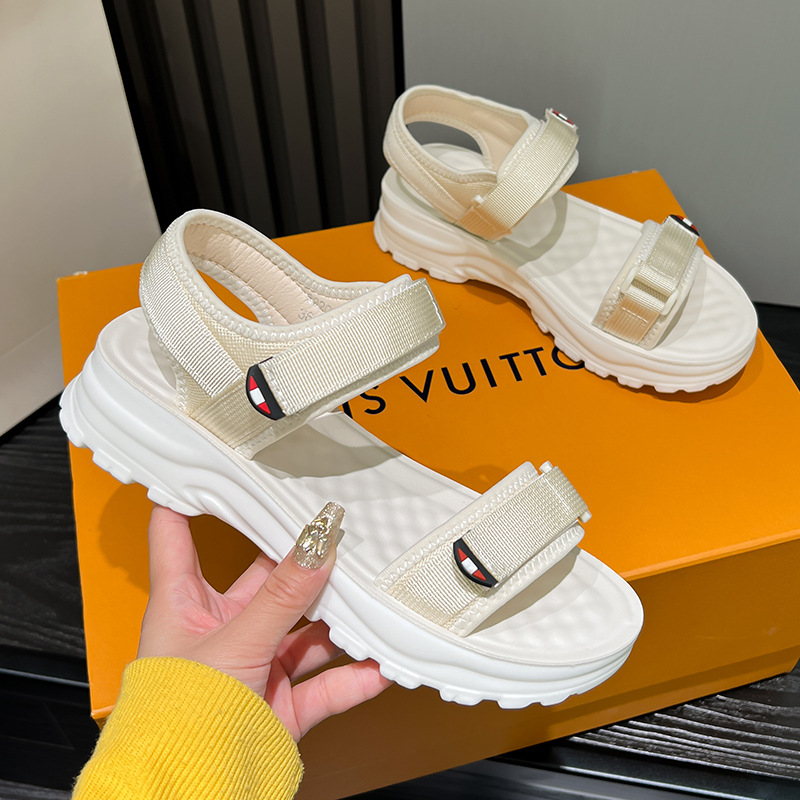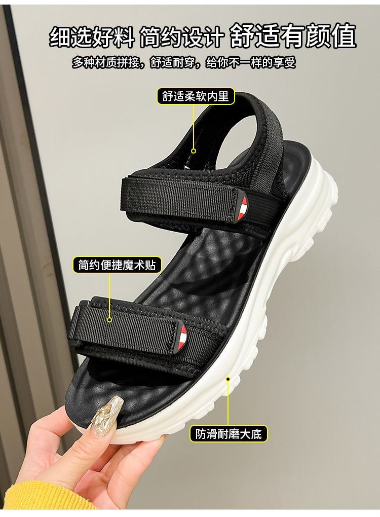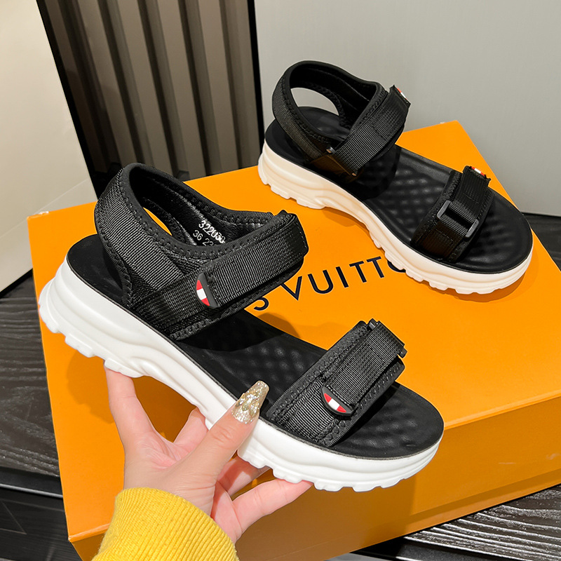2024 년 여름 신형 통근 샌들 여자 두꺼운 밑창 높은 아웃웨어 한국식 올매치 캐주얼 경량 스포츠 여성 신발