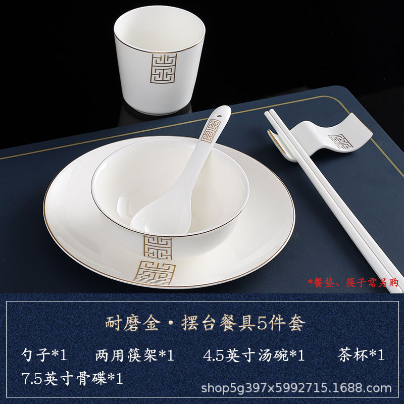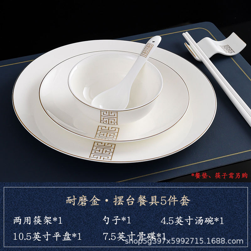 • [강한 본차이나] 내마모성 골드 대형 5종 세트