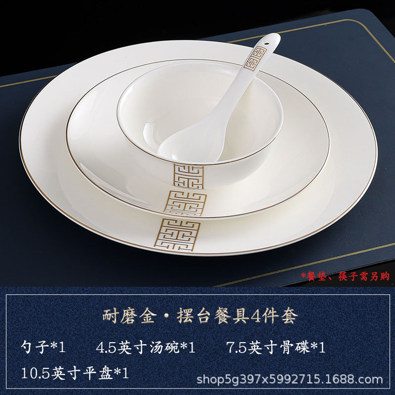 • [강한 본차이나] 내마모성 골드 대형 4종 세트