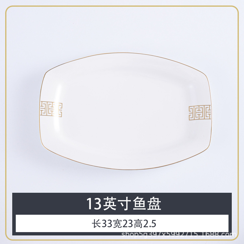 • [강한 본차이나] 내마모성 골드 13inch 피쉬 플레이트