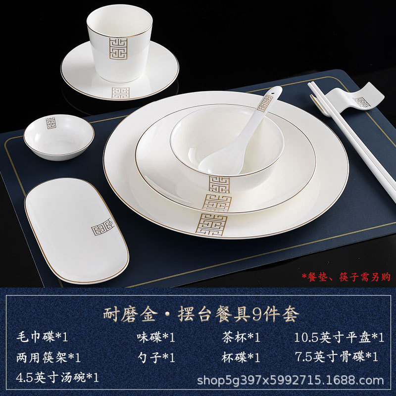 • [강한 본차이나] 내마모성 골드 대형 9종 세트