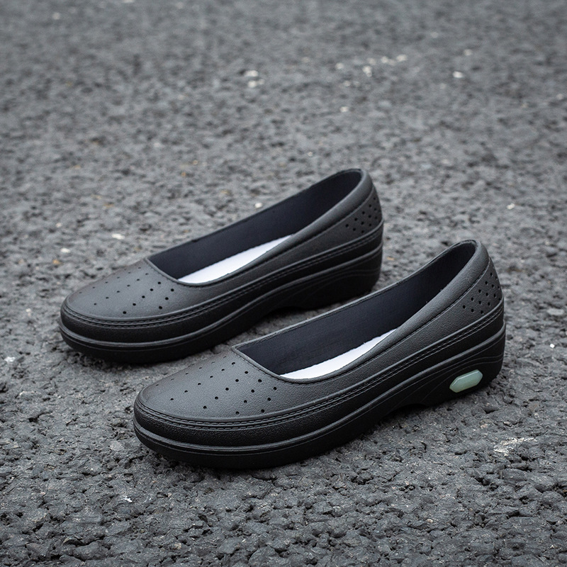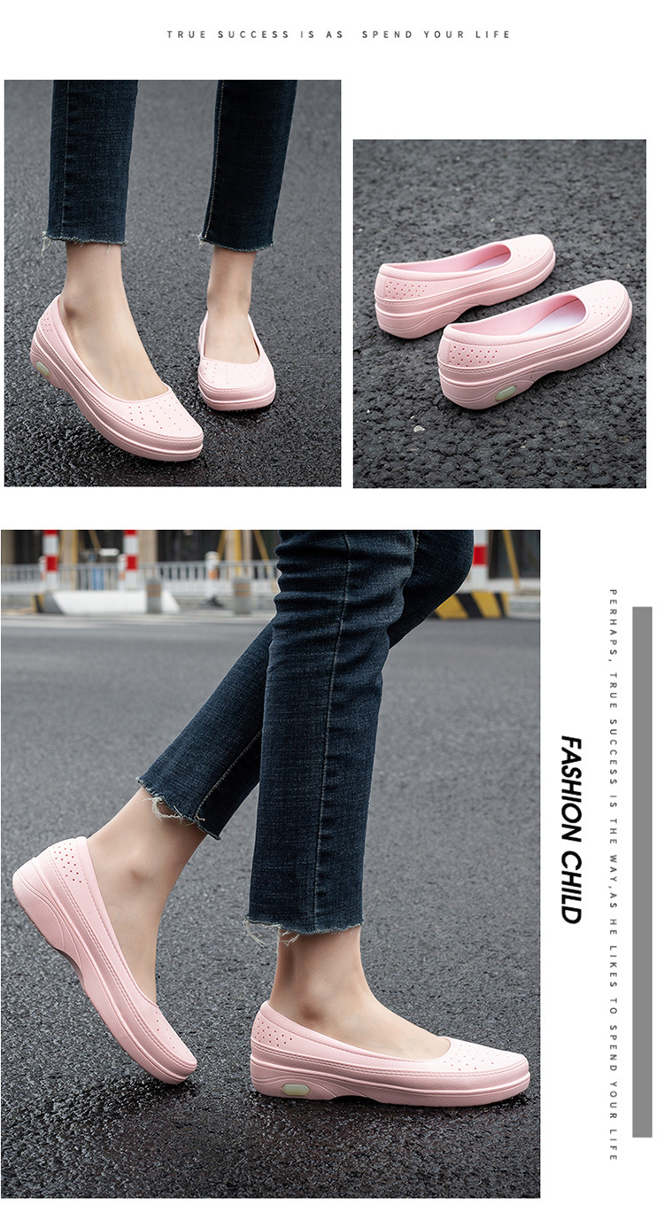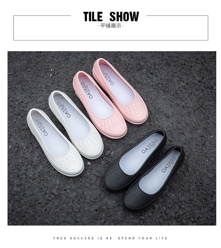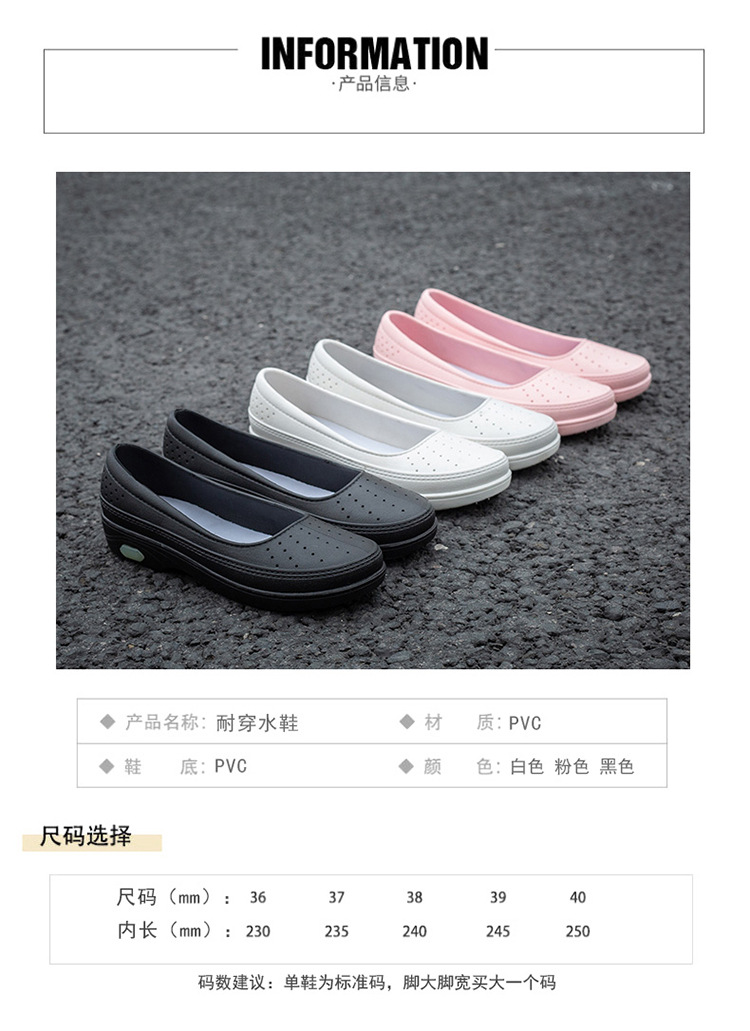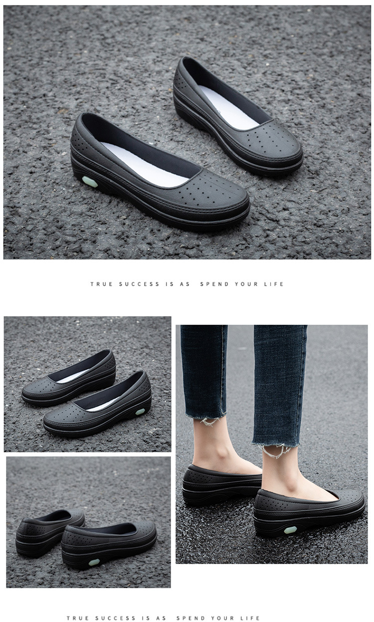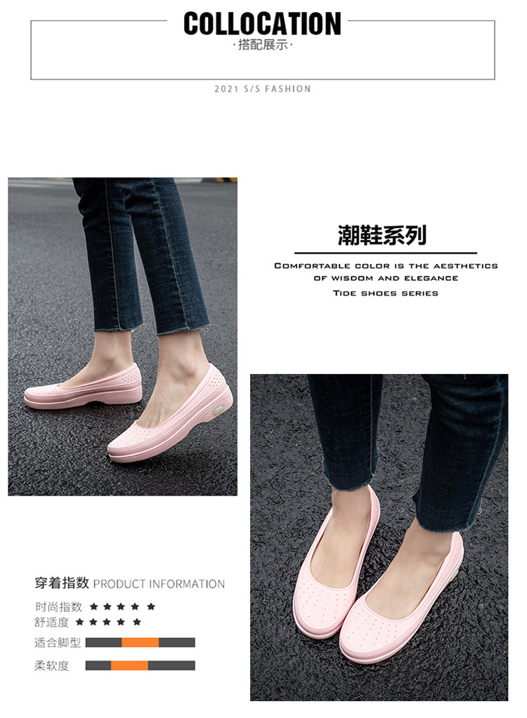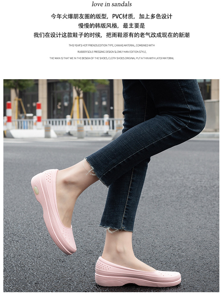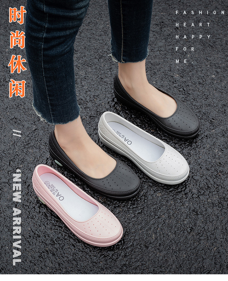 국경 낮은 최고 얕은 입 비 신발 여성 유행 달콤한 캐주얼 올 매치 싱글 레이어 신발 미끄럼 주방 부드러운 밑창 방수 고무 신발스토어 가기