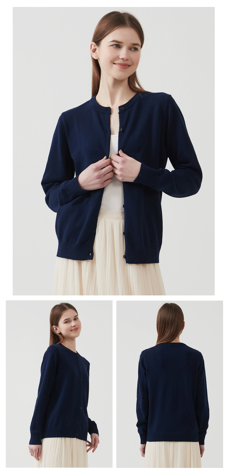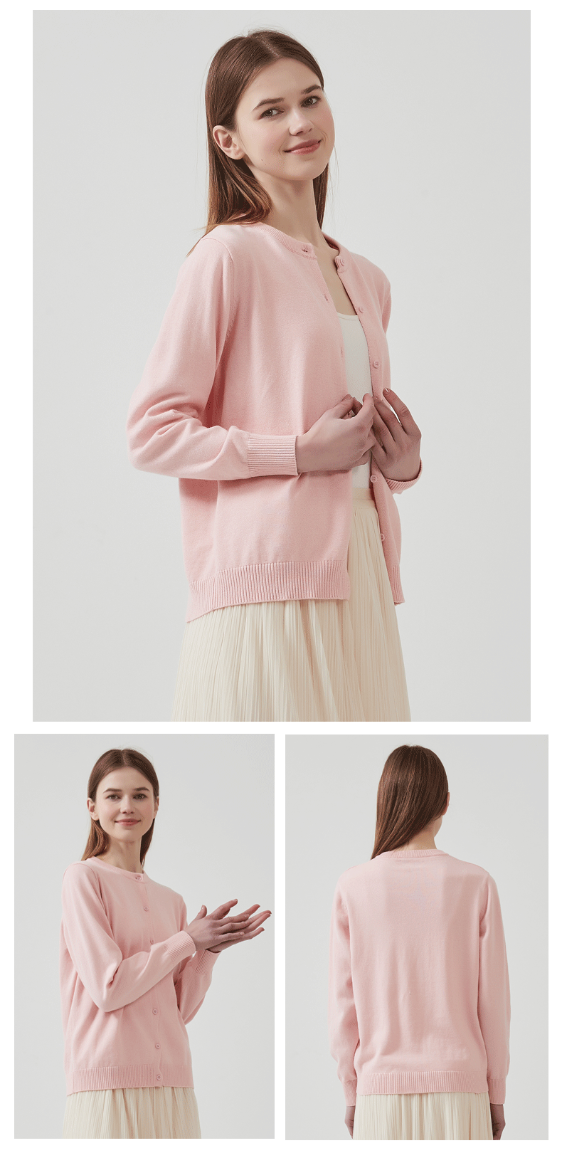 2025 카디건 성인 여성 스웨터 여성 니트 탑, 순면 봄, 가을 얇은 라운드 넥 니트 얇은 재킷스토어 가기