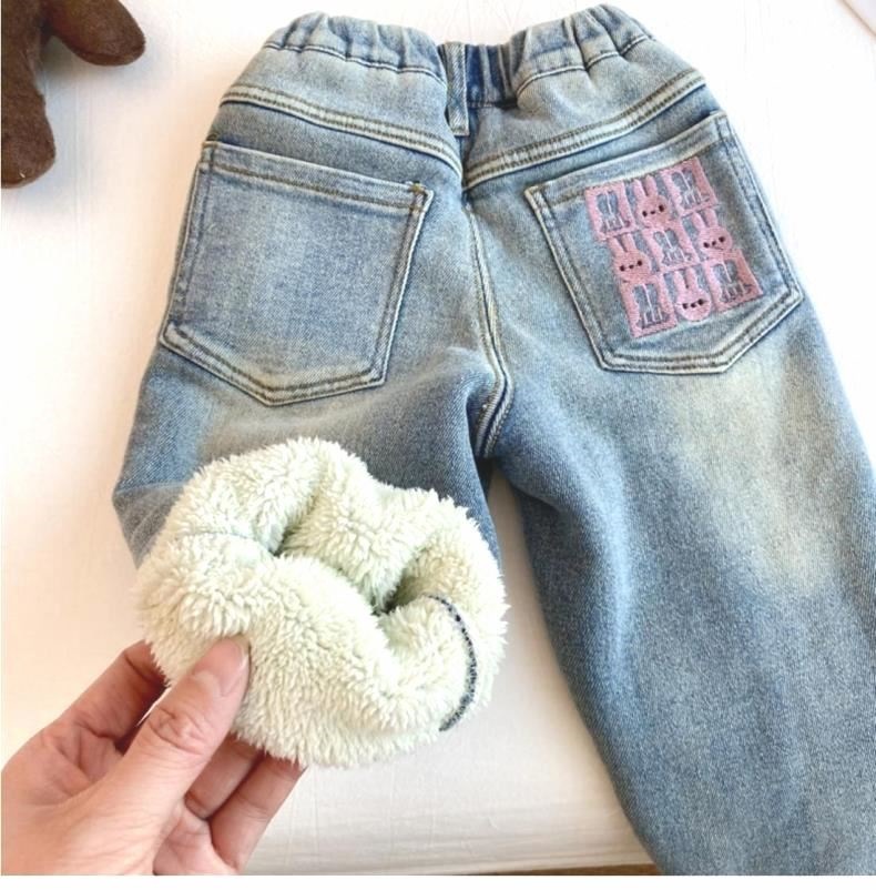 여자 청바지 겨울 기모 2024 새로운 원피스 벨벳 램 벨벳 여성용 가을 겨울 어린이 바지
