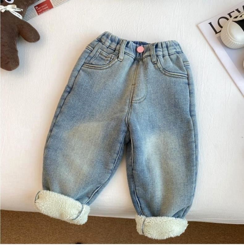 여자 청바지 겨울 기모 2024 새로운 원피스 벨벳 램 벨벳 여성용 가을 겨울 어린이 바지스토어 가기