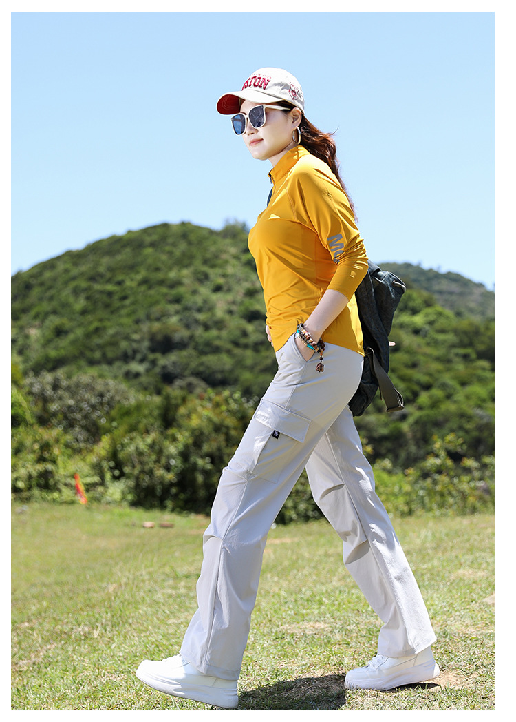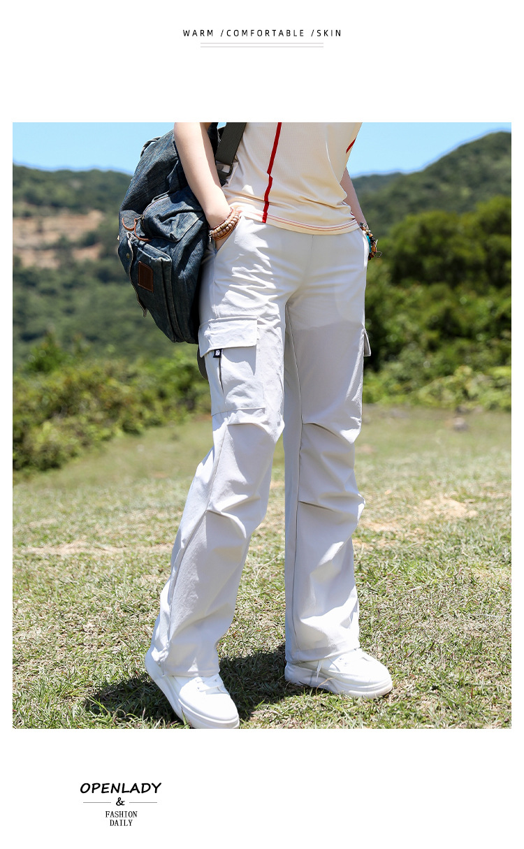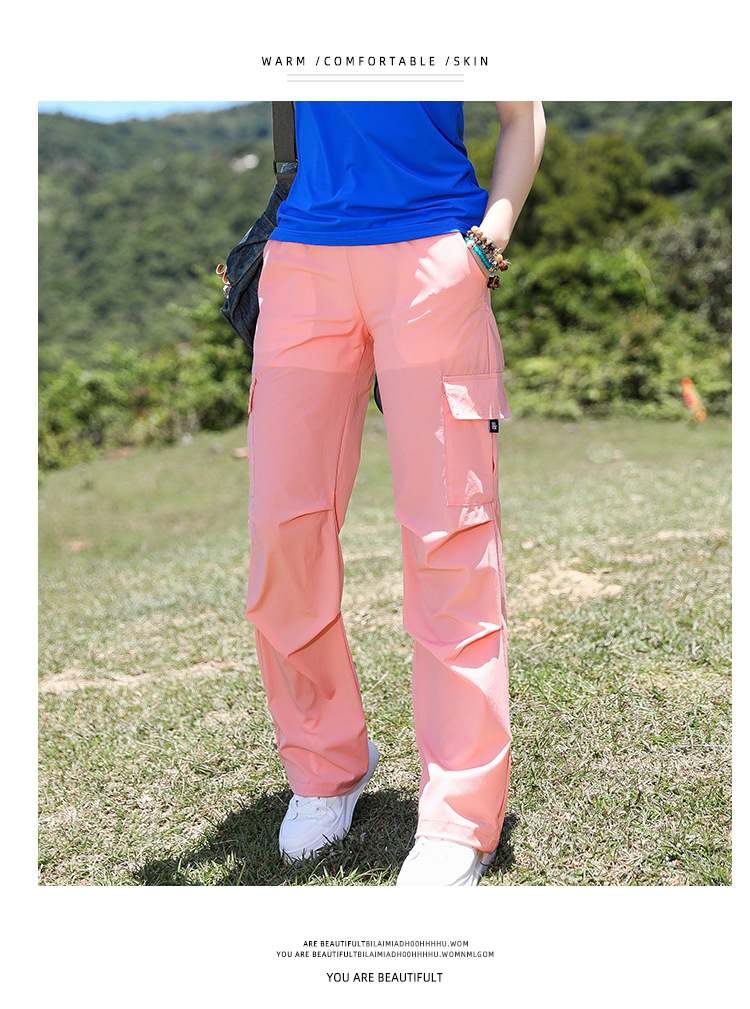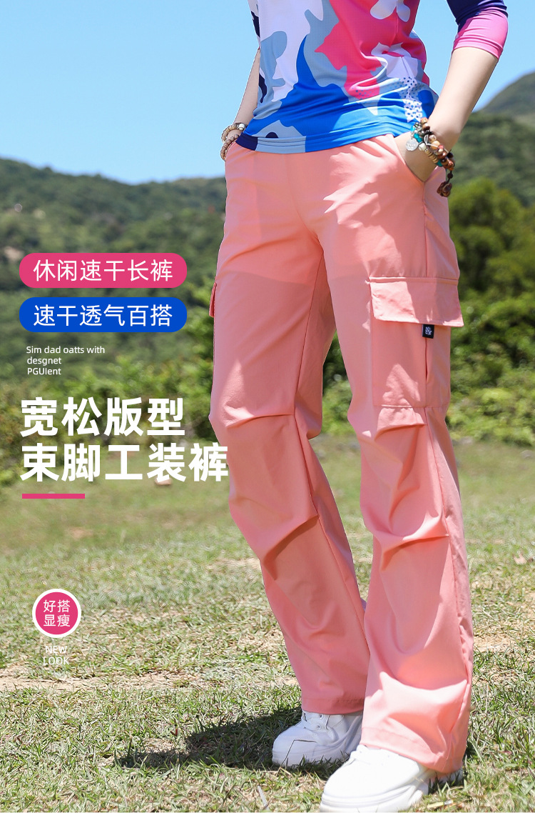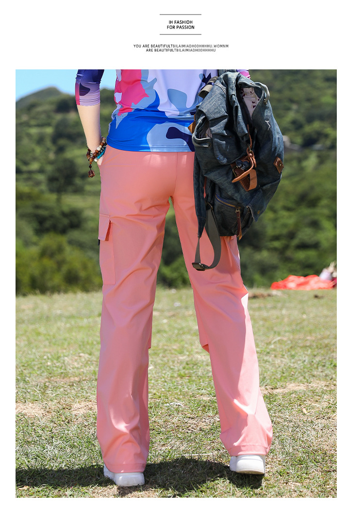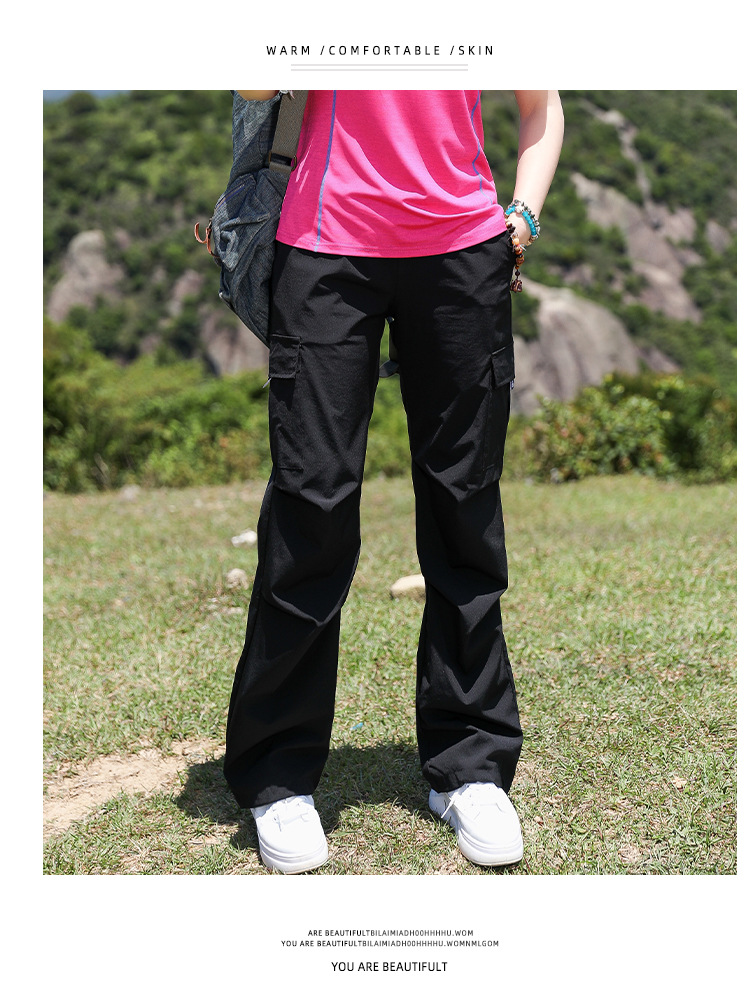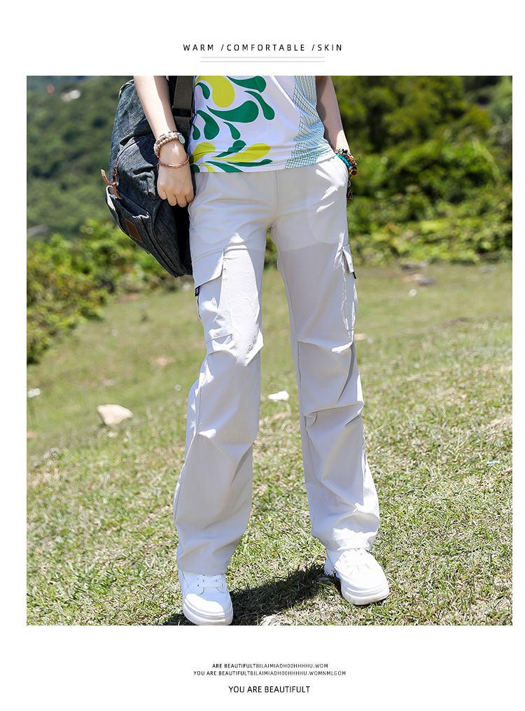 야외 태양 보호 바지 여성용 경량 통기성 멀티 백 오버롤 빠른 건조 바지 여성용 바지 활 다리 느슨한 러닝 바지