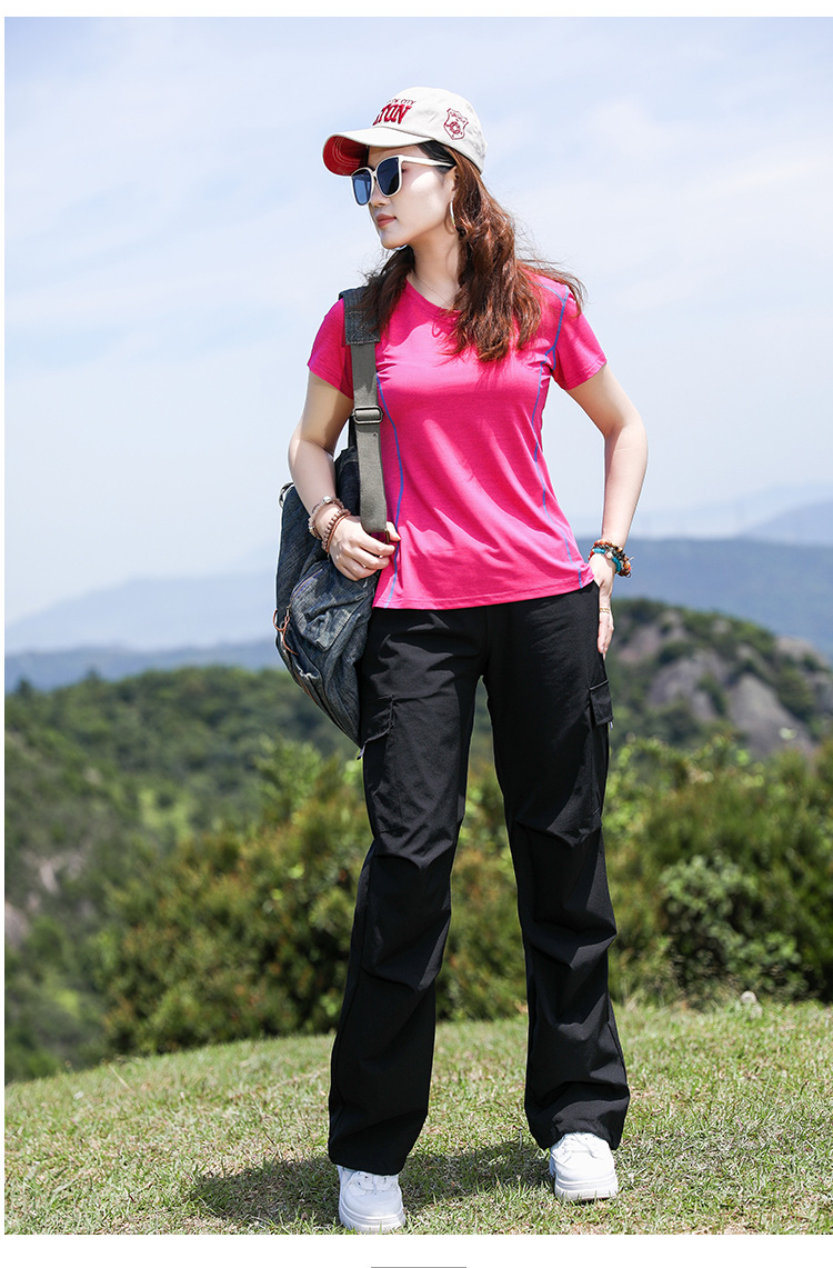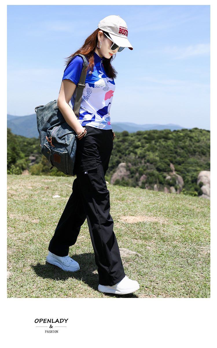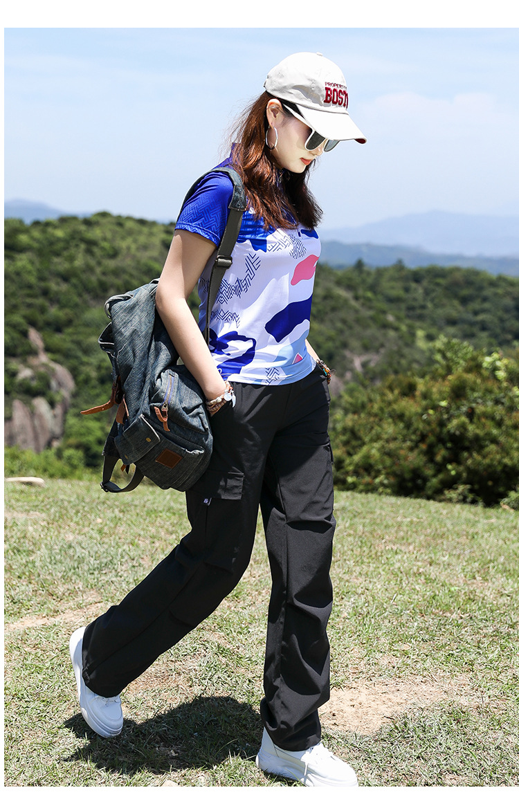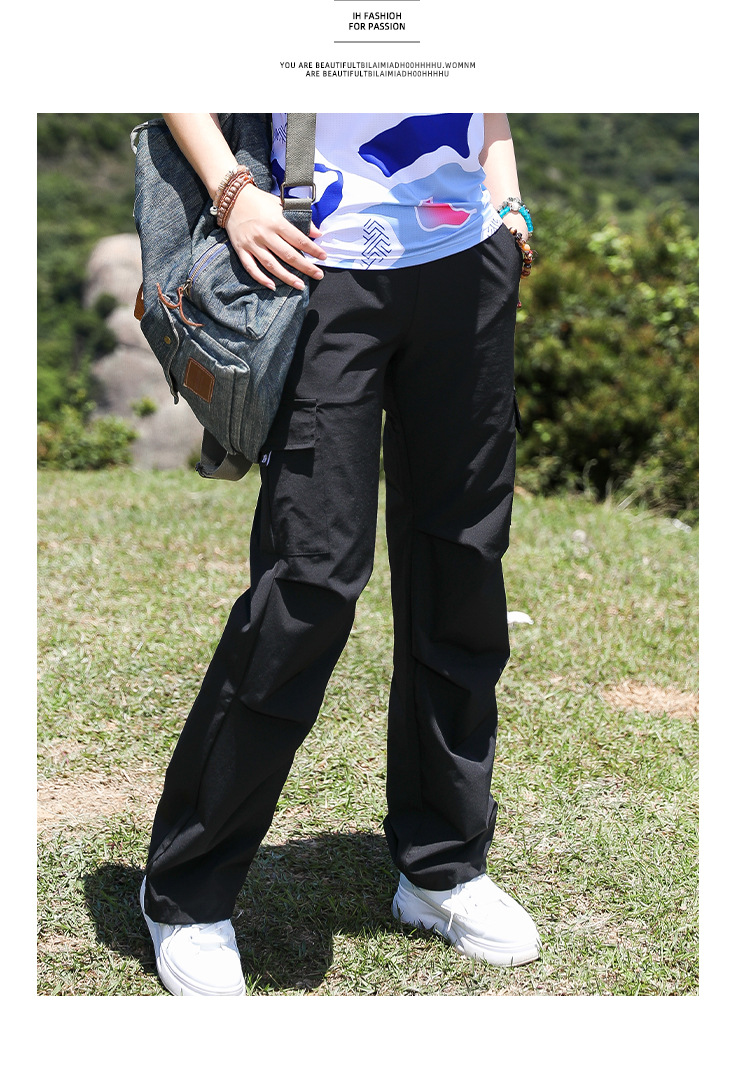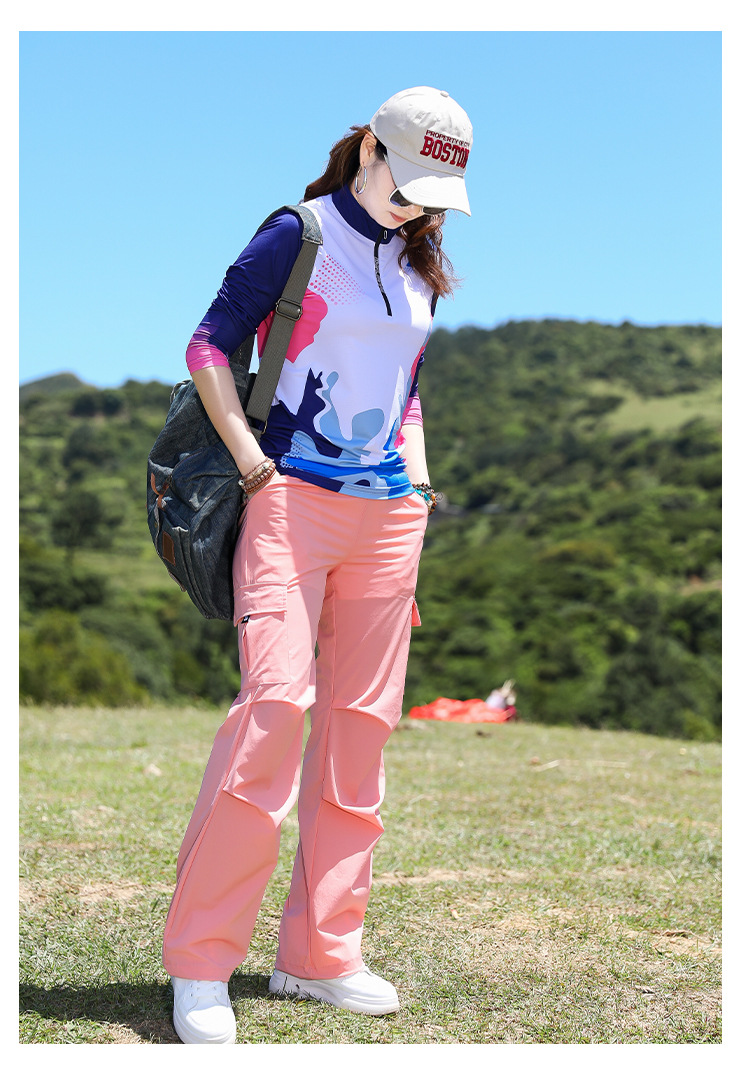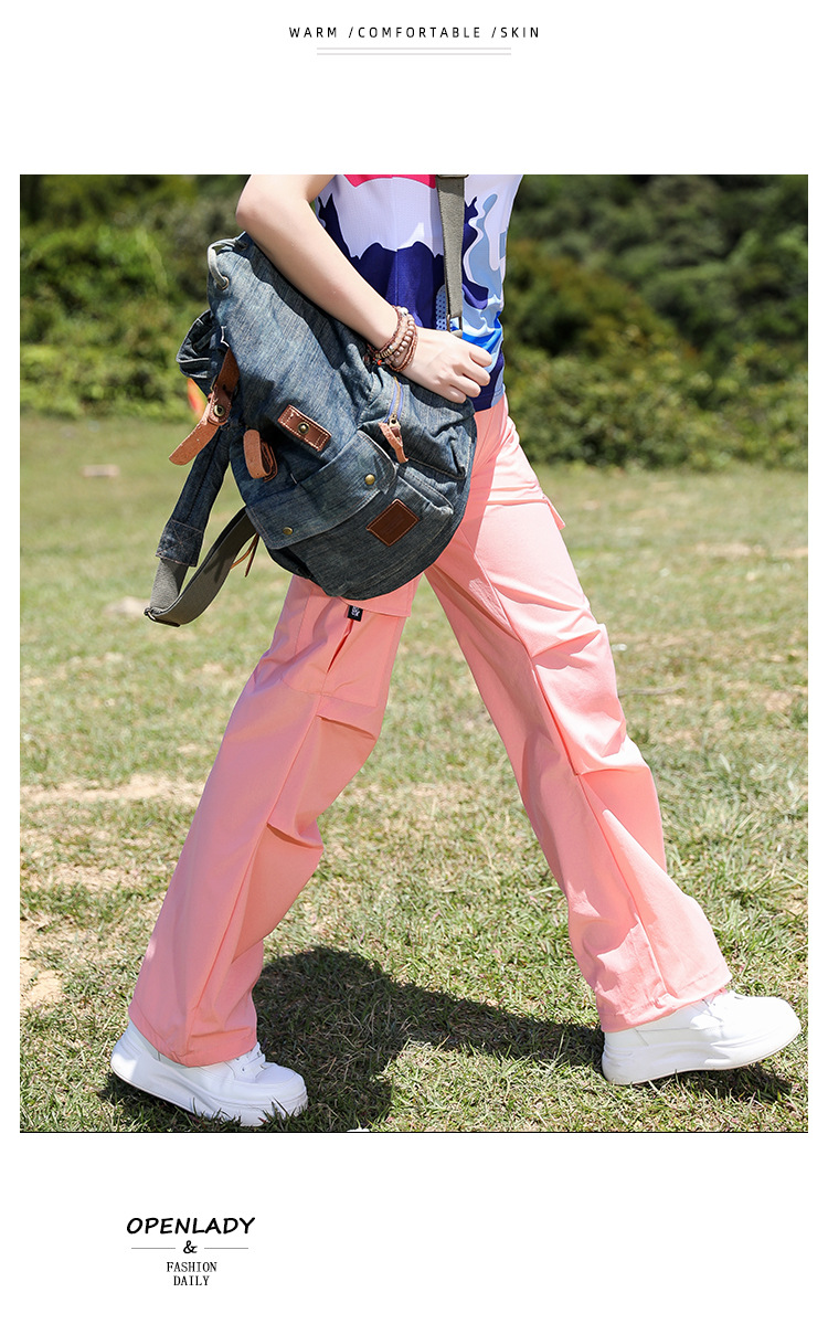 야외 태양 보호 바지 여성용 경량 통기성 멀티 백 오버롤 빠른 건조 바지 여성용 바지 활 다리 느슨한 러닝 바지