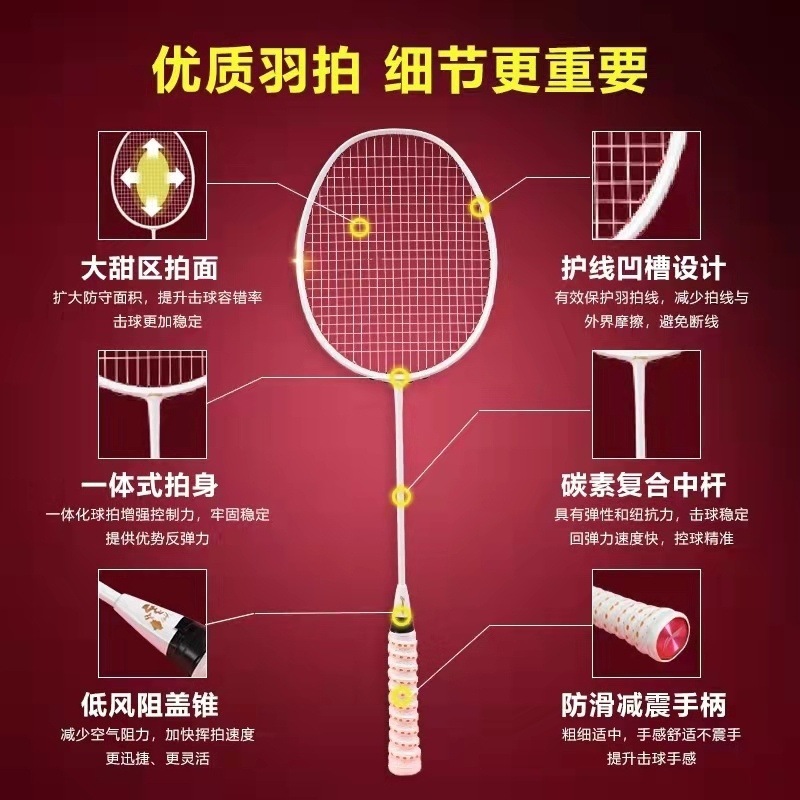 배드민턴 라켓 풀 카본 초경량 4U 더블 싱글 라켓 세트 내구성 있는 더블 훈련용 라켓 성인용 공격형