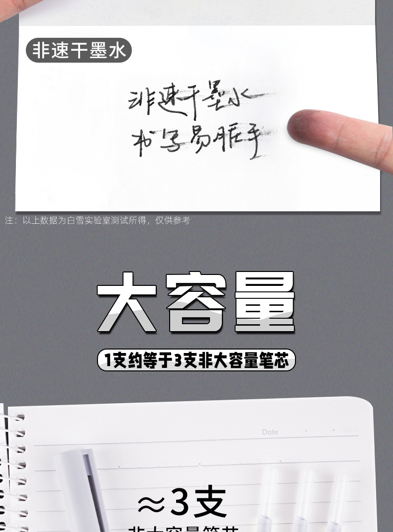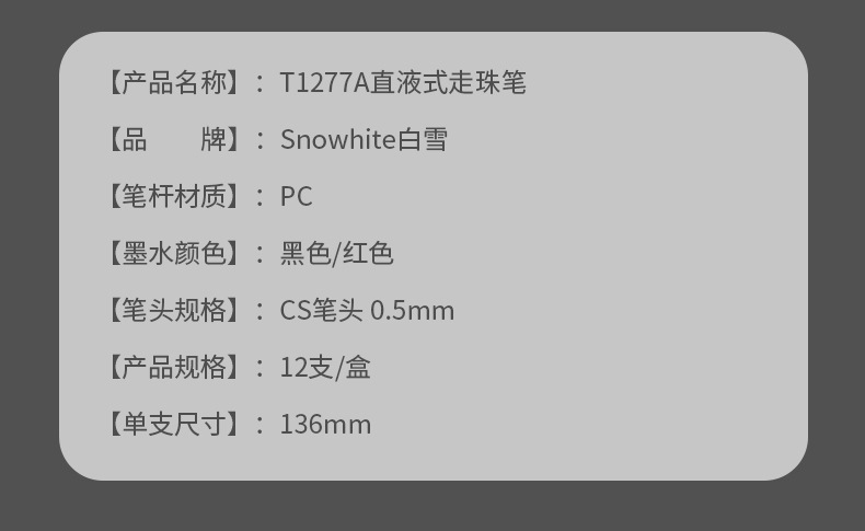 백설 공주 T1277A 직접 액체 볼 펜 CS 빠른 건조 슈퍼 대용량 블랙 잉크 레드 잉크스토어 가기