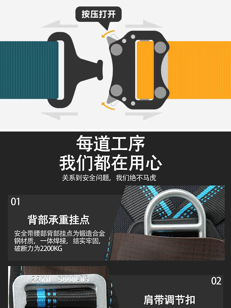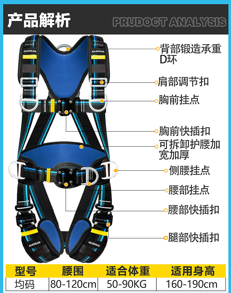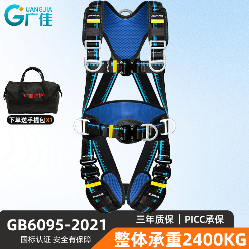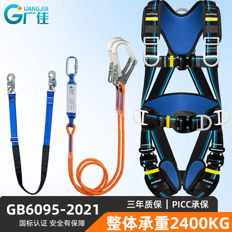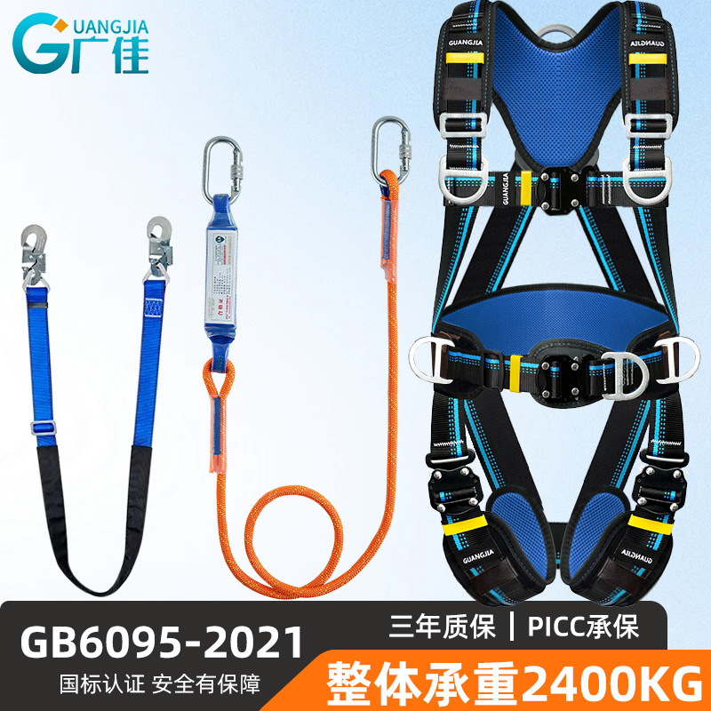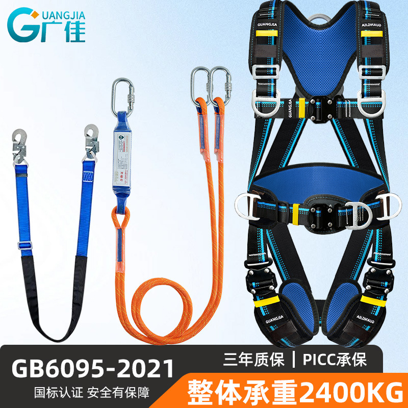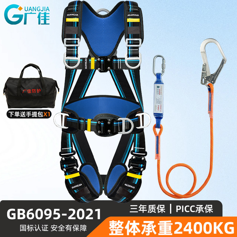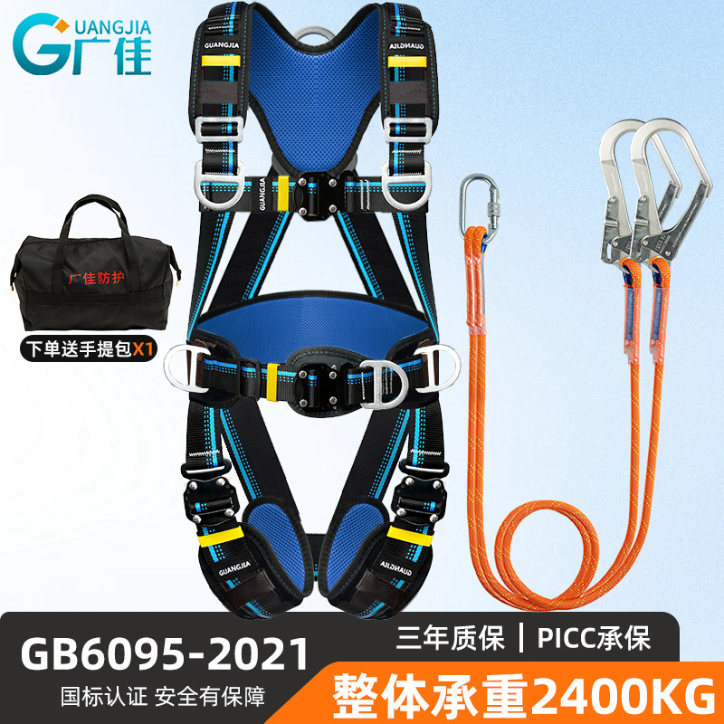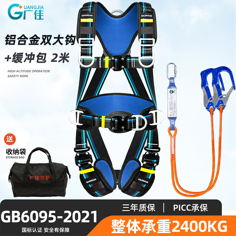 새로운 국가 표준 5 점 안전 벨트 분리 가능한 높은 고도 작업 안티 가을 더블 후크 안전 로프 세트 완전 빠른 삽입