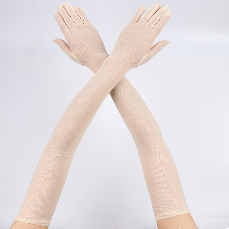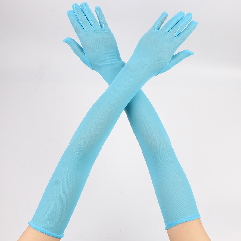 55cm 길이의 얇은 메쉬 레이스 장갑 여성의 검은 실크 섹시한 통기성 손 양말 높은 탄성 선 스크린 원피스 액세서리
