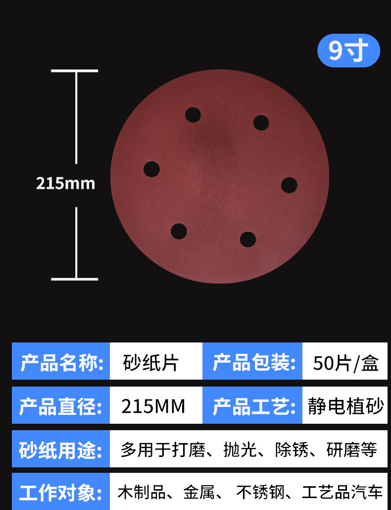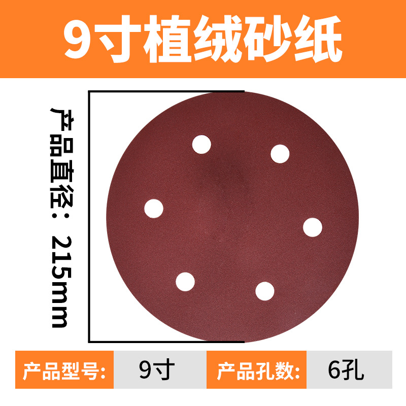 9 인치 6 홀 7 인치 8 홀 디스크 붉은 모래 자체 접착 벨벳 사포를 연마하기위한 사포 퍼티 파우더 연삭 기계 잠금스토어 가기