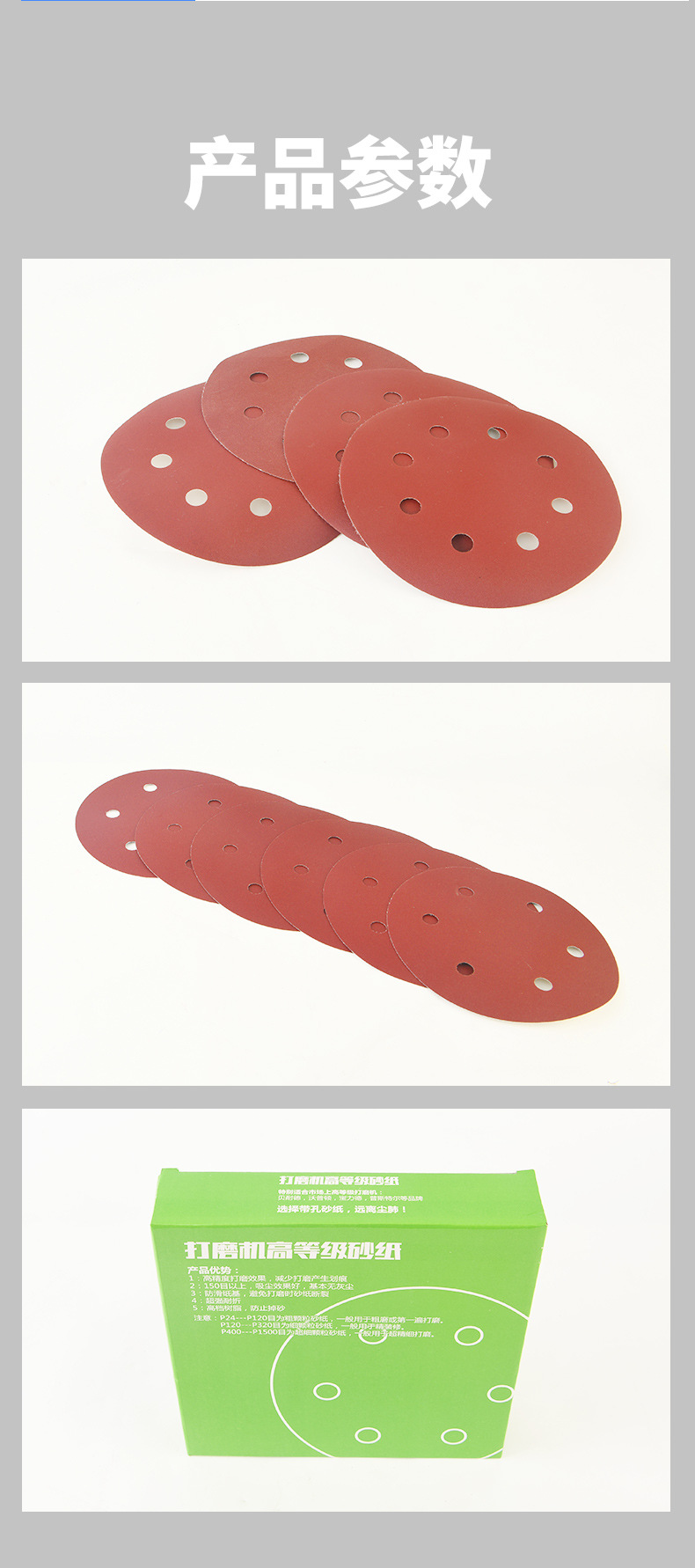 9 인치 6 홀 7 인치 8 홀 디스크 붉은 모래 자체 접착 벨벳 사포를 연마하기위한 사포 퍼티 파우더 연삭 기계 잠금