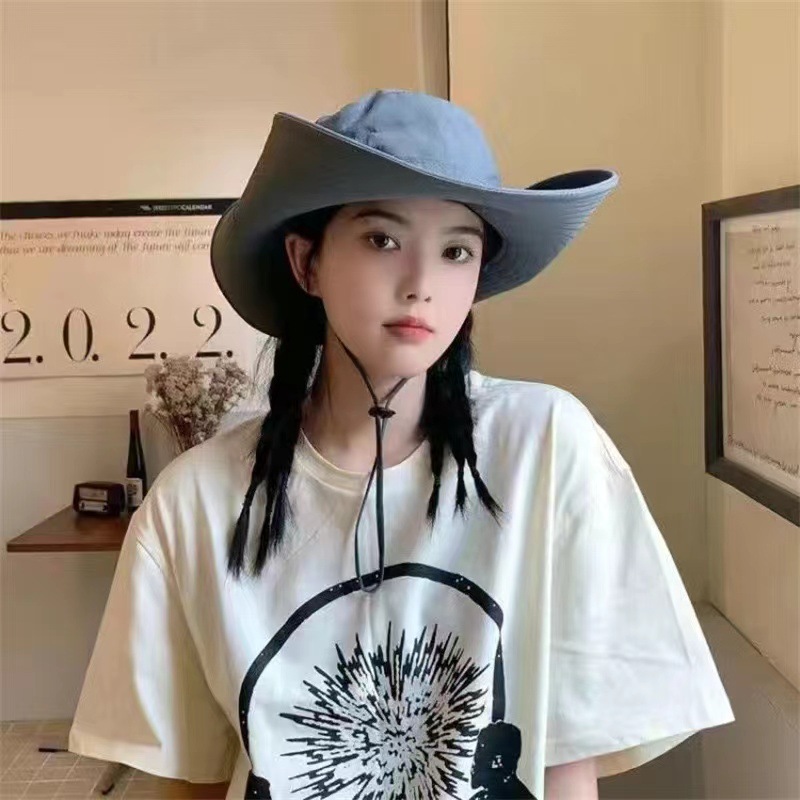 스포츠용 등산 모자, 서부 카우보이 스타일 조임끈, 낙하 방지, 넓은 챙, 낚시꾼 모자, 자외선 차단, 남성용, 레트로 문예 스타일스토어 가기