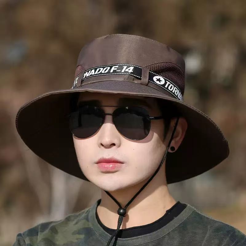 스포츠용 등산 모자, 서부 카우보이 스타일 조임끈, 낙하 방지, 넓은 챙, 낚시꾼 모자, 자외선 차단, 남성용, 레트로 문예 스타일