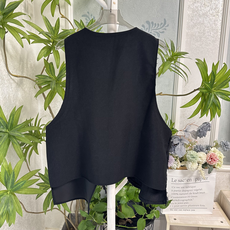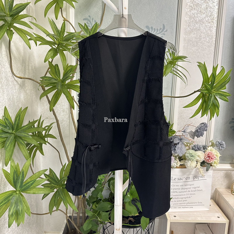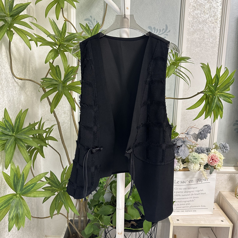 QM EO 새로운 중국 조끼 여성 봄과 가을 블랙 2024 봄 버클 디자인 술 바느질 느슨한 국가 스타일 조끼스토어 가기